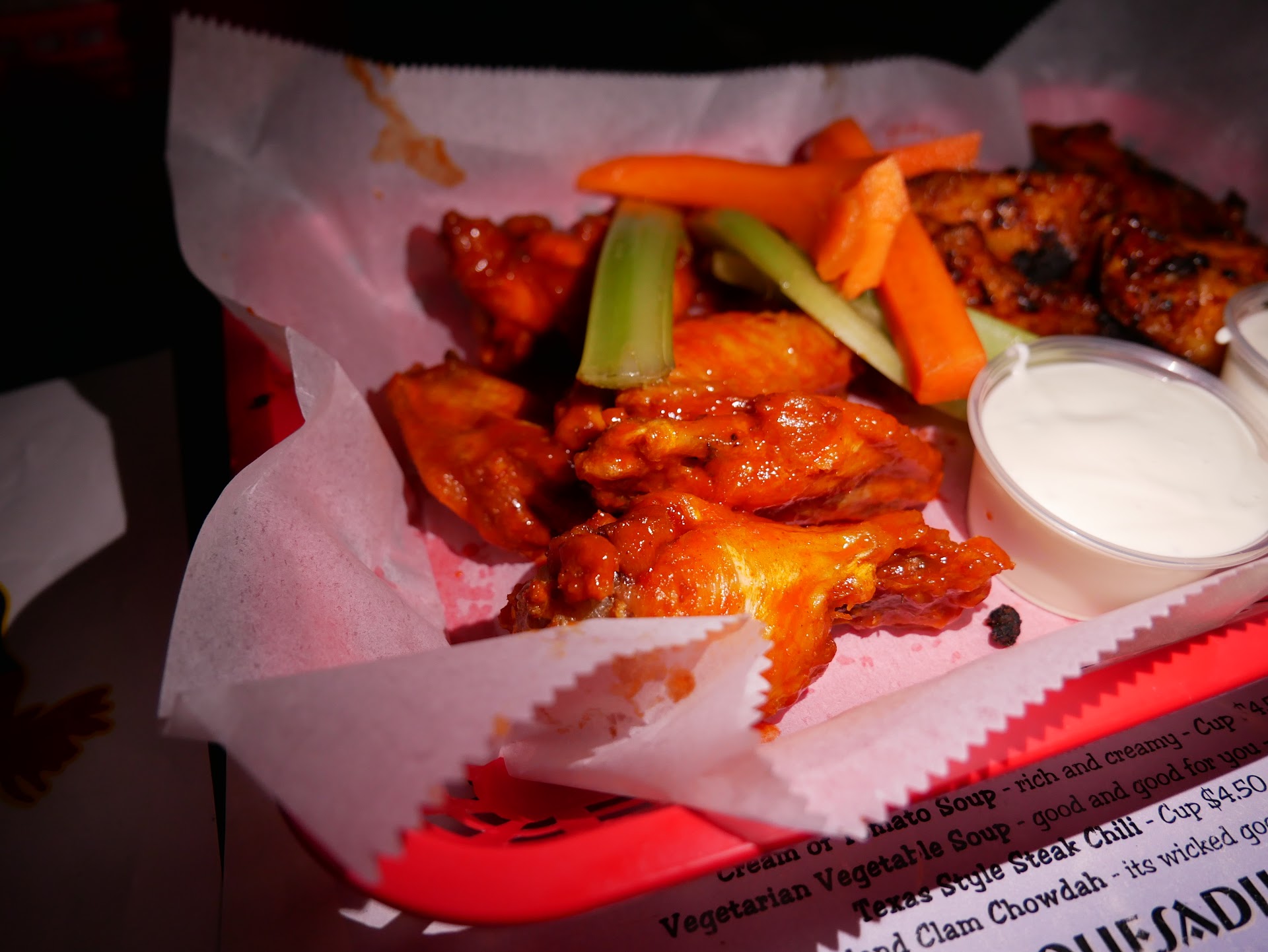 Food: Alright, so I tried out 5 of their legendary flavors! You can only get 1 flavor per 5 wings so keep that in mind. Some of them are fried and some are grilled, but you have to ask since the menu won't tell you.