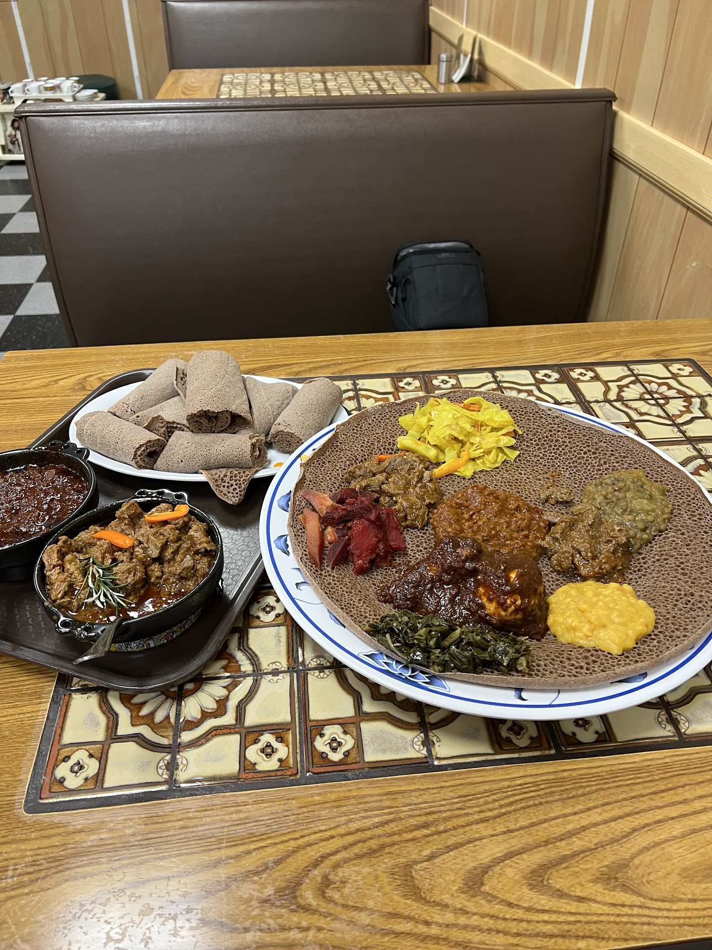 Read moreThe food was amazing! We will definitely come back my husband and I drove two hours to get to this location the food was homemade the Injera bread was so soft and light the vegetables OMG! I can’t even explain the flavors. I remember corn,collard greens, and some other type of veggie stews, it was amazing! We started with coffee with no sugar it was quite tasty but of course all coffee with no sugar you know it’s bitter, but it was amazing as well the tea I cannot even explain so many flavors! We will definitely be back thank you for the hospitality and the great food. This location also has a different variety of items from popcorn kernels, grains, to home decor definitely a one stop shop amazing people great customer service. Great Prices! We ordered the veggie platter...
