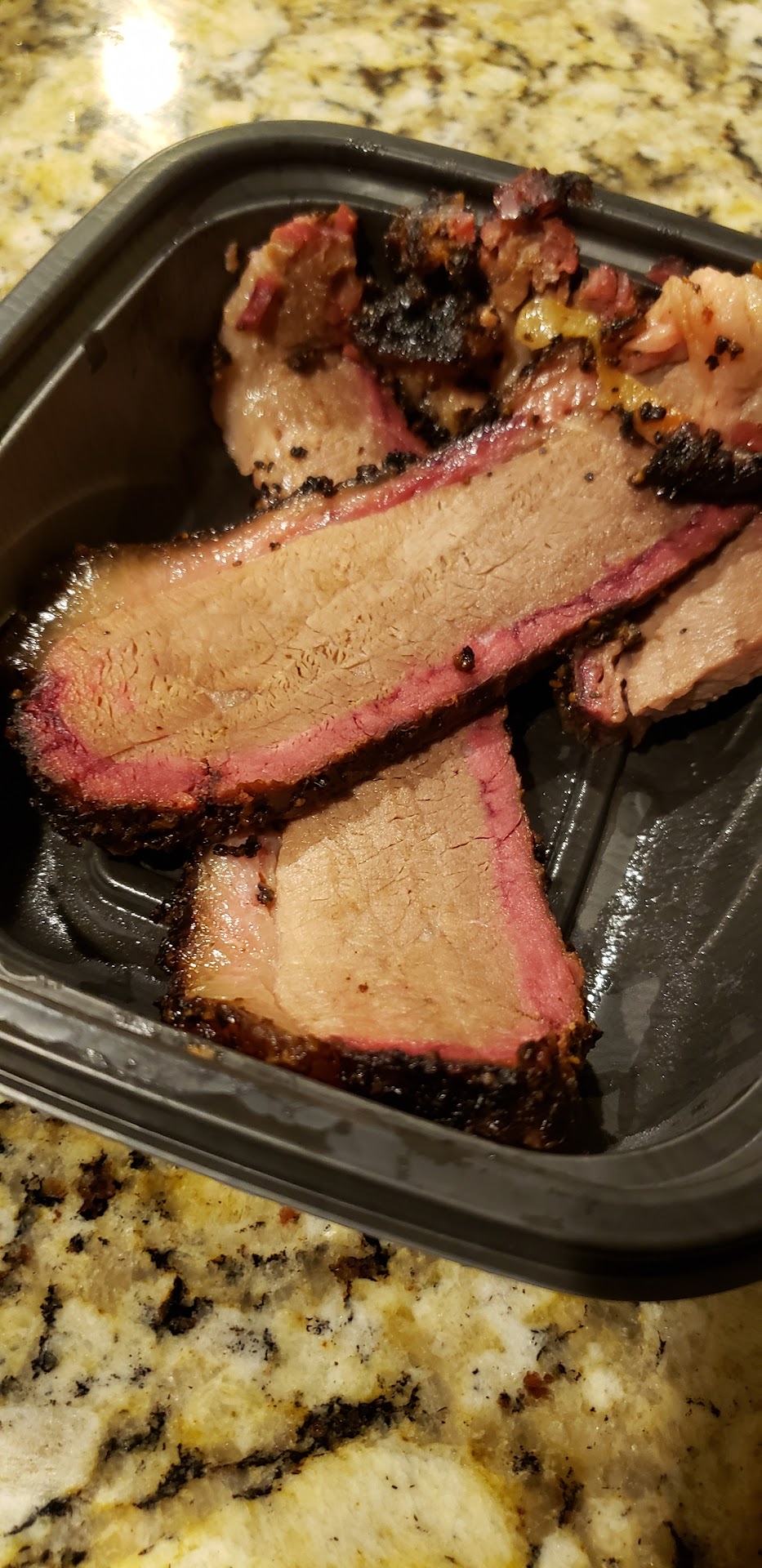 #JonGs brisket is juicier, has a thicker smoke ring and the rub is more flavorful. #JonGs turkey is juicer, like butter and more delicious. The Broccoli Salad had walnuts, golden raisins, broccoli, mayo and pickled onions. The Bread Pudding had a lemon glaze, served warm and completely disappeared. 😋 The hushpuppies were less than desirable. Fried too long to a dark brown, a bit greasy and lacking flavor. The wings were smoked and seasoned a bit peppery. I wouldn't order either of these again.
