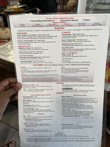 The menu has chicken sandwiches, burgers (the most popular being The Vermont Maple burger), hand-dipped ice cream, and house-made pastries (I was eyeing that peanut butter pie). I was told not to sleep on the cinnamon rolls. Get thisâa secret menu item: a peanut butter and jelly burger! They also serve vegan, vegetarian, and keto burgers. Plus, theyâve got some Northeastern regional favorites like a Maine Italian on a soft roll, Massachusetts North Shore Roast Beef on an onion roll, and a Boston Steak Bomb on a grinder roll. If youâre looking for a STACKED Reuben sandwich on rye, they say it can easily...