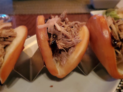 To start, I had the miso soup. What I normally like about miso soup is the warm and soothing feeling I get when drinking it. While I'd be lying if I said it didn't taste good, it just didn't quite hit the spot. What was really disappointing were the duck buns. First of all, it was blatantly missing the arugula that was part of the description. Yet, having the arugula would not have made the dish any better. When it comes to duck, I'm looking for juciness and exquisite flavor. What I got instead was something resembling pulled pork, in both taste and texture. I don't particularly like pulled pork, but I have to admit that I've had juicer pulled pork than the duck in that bun. The dish might have been saved had the bun been heavenly and a delight to eat, but it wasn't. It did not add anything to the overall dish. It was literally there just to hold the duck, quite the missed opportunity.