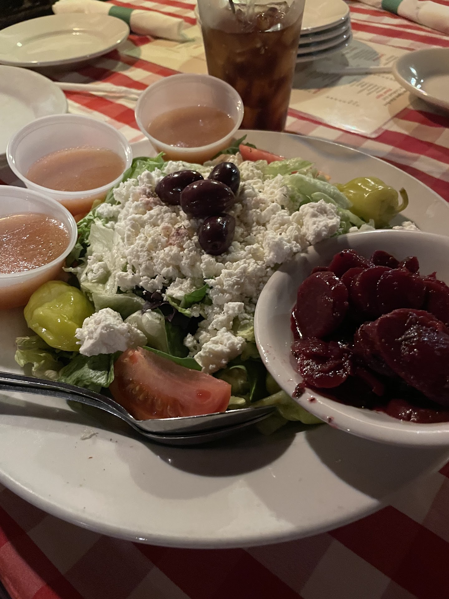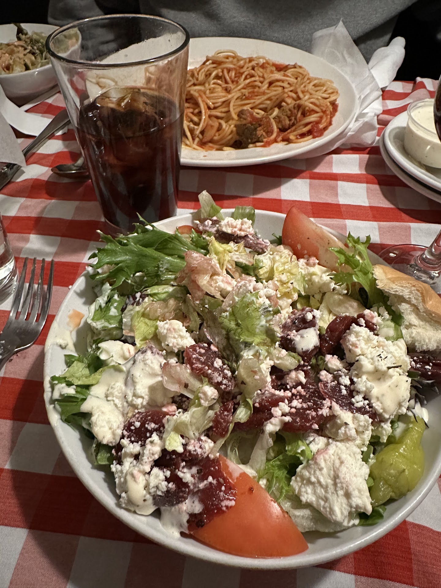 We finally got seated 15 minutes later only to find out that our unfriendly waitress was also feeling overwhelmed. One time, when I got her attention to ask for drink refills as she walked by, she actually said "What?" instead of "Yes sir? May I help you?". Seriously? Later, the owner lady started to seat some people and the waitress told her not to and that "she didn't have anything to work with". So those people got to go wait some more! We also heard our waitress complaining to patrons at another table. I think they needed 3 waitresses to work the area that this 1 waitress was working. It's Valentine's Day, so you would think they would have extra help on hand.