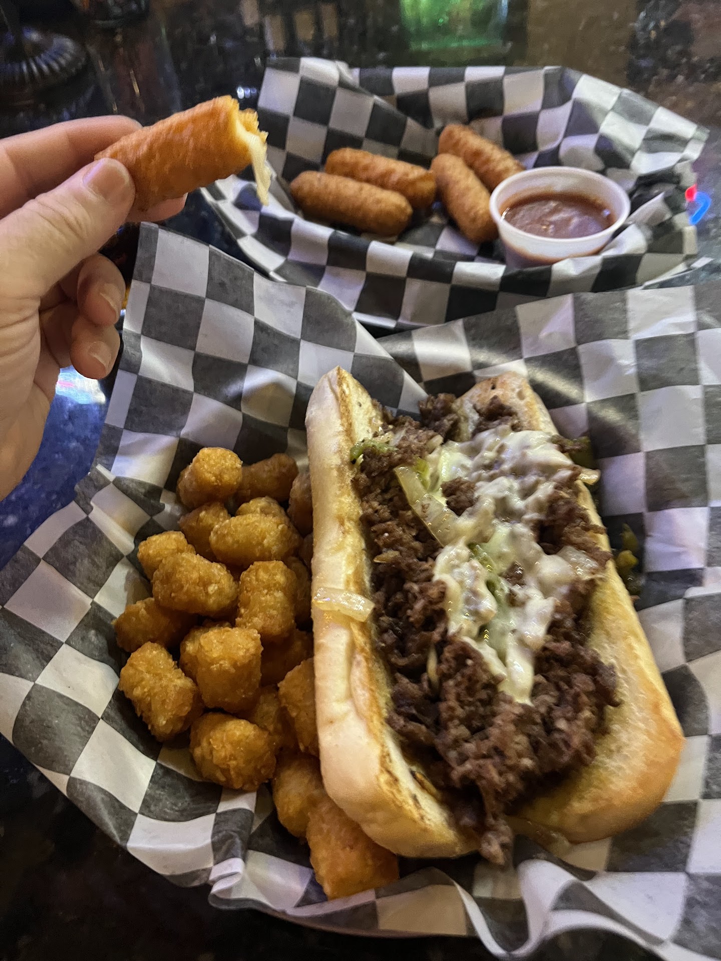 Read moreWe saw this place on #DDD and decided to visit on our trip to Charlotte. The folks are friendly here in the restaurant and go cart racing place. Family enjoyed their time here. Did the go carts, axe throwing, and VR along with the food. We tried a couple items featured on DDD - the tots and the chicken sandwich. The tot appetizer was really tasty. Good bite of the pork and other toppings. I was expecting more from their famed chicken sandwich though (forgot the name). Was certainly expecting more flavor from the description and it was very dry. We added extra Jalapeño creme sauce and that was helpful in multiple ways. Absolutely LOVED the wings with the dry rub. Try those with the sauce for the...