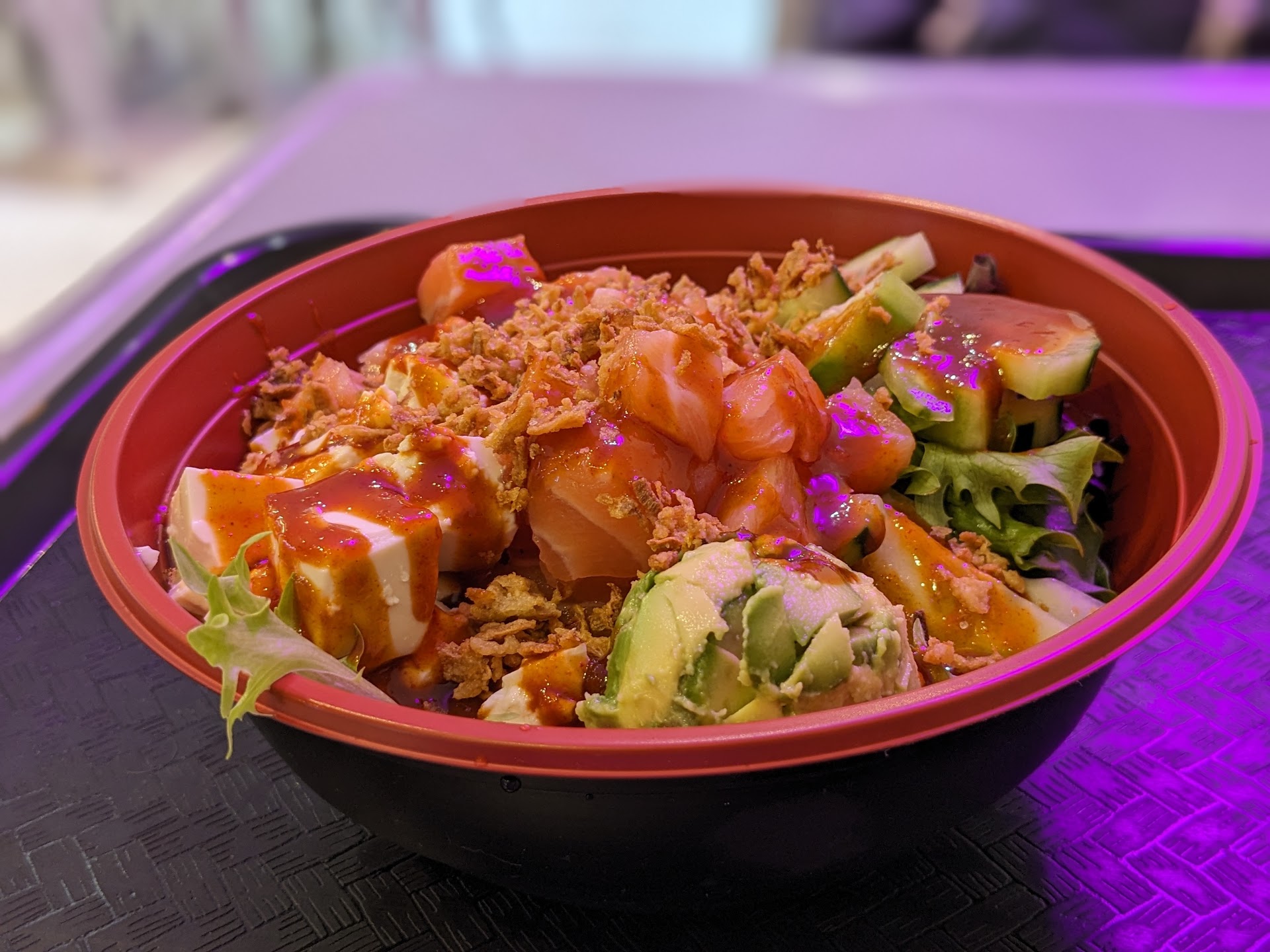 Poke Bowl is wonderful for a fast, fresh, and healthy bite to eat. So many fresh choices to choose from whether you customize your bowl or if you order a "standard" choice.