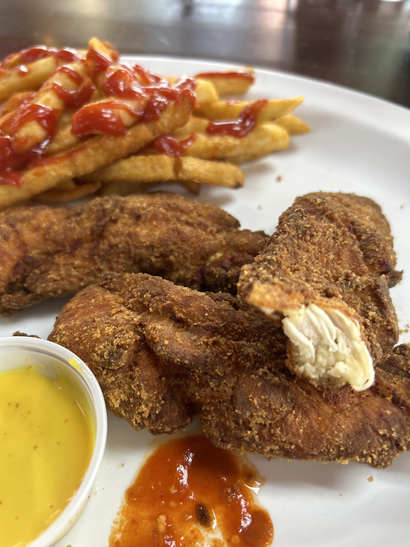 Read moreA hidden gem of Charlotte you must try! Their rotisserie chicken is always juicy and tender while bursting with flavor. You can also order individual pieces of a chicken fried in their amazing batter. When we go the two of us will split a whole grilled chicken ($11) and 2 fried chicken breasts. Everything there dipped in their light green sauce will have you in heaven! Seriously 😆 The pupusas are equally delicious and make a perfect side, we take pieces of the chicken and put it atop a bean & cheese pupusa with the slaw that comes with it, drizzle the green sauce and that’s it you’re fckin hooked and will smile when you think of the first time you tried P O L L O 👑 R O Y A L 10/10