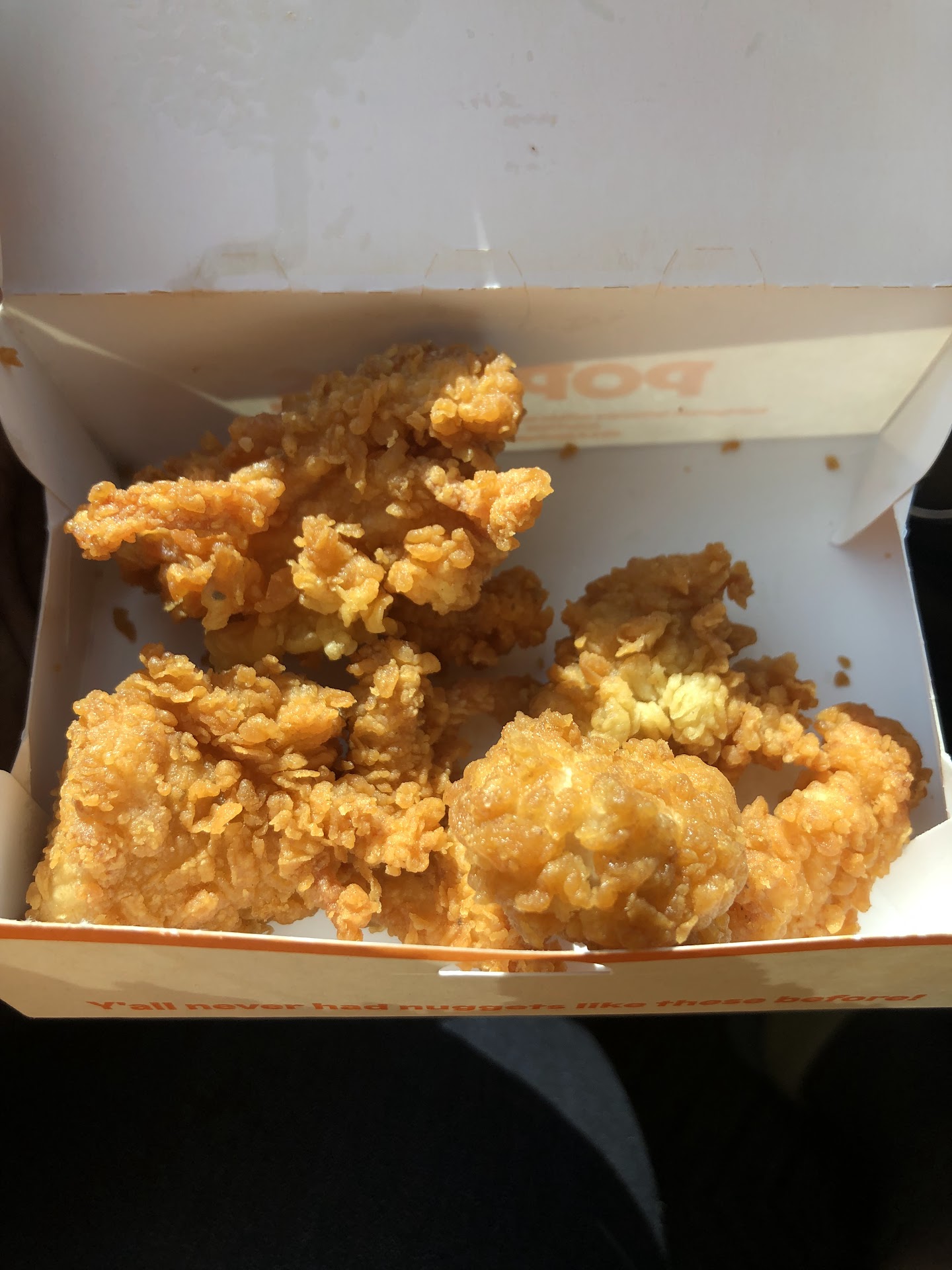 Read moreFirst let me say as I surveyed this place the manager had no idea. Second a little older lady came in sat a chicken sandwich down and said it was to hard and it was I saw it. Then I completed an almost $40 dollar order and I ordered the. 5 piece chicken special NOW THAT WAS WHAT I WAS SURVEYING THE CHICKEN. The chicken I saw was really dark brown and looked to been under the light as long as they had opened. I told the cashier Heather which was the only white lady in the whole crew that I wanted fresh chicken by the way Heather was a very sweet lady. I says I could wait no matter how long because the other chicken looked dry, oily and hardened from the hot light it was sitting under and after 10 min A HIGE BLACK LADY STEPS OUT AND ASK HEATHER what is she waiting on the server says fresh chicken and the black woman went on to say that you should’ve given her that chicken then Heather replied but she wanted fresh chicken the big black woman was hott then she says Not here so i commented and said that’s what I wanted was fresh chicken as the big black woman continued to argue with me she angrily threw the chicken in a box and hollers she ready. She says it’s company policy to sell the chicken that’s up in the glass first, BUT NO MAAM IM NOT BUYING IT AND WERE GOING TO SEE ABOUT COMPANY POLICY. I’m sending this report in a hurry to the Popeyes head quarters. This store is not needed and thanks for showing your true colors By the way the lady that brought the chicken sandwich back you talked to her like trash.You should be fired Big Black Lady Manager Period!!!!!!! And the chicken nuggets...