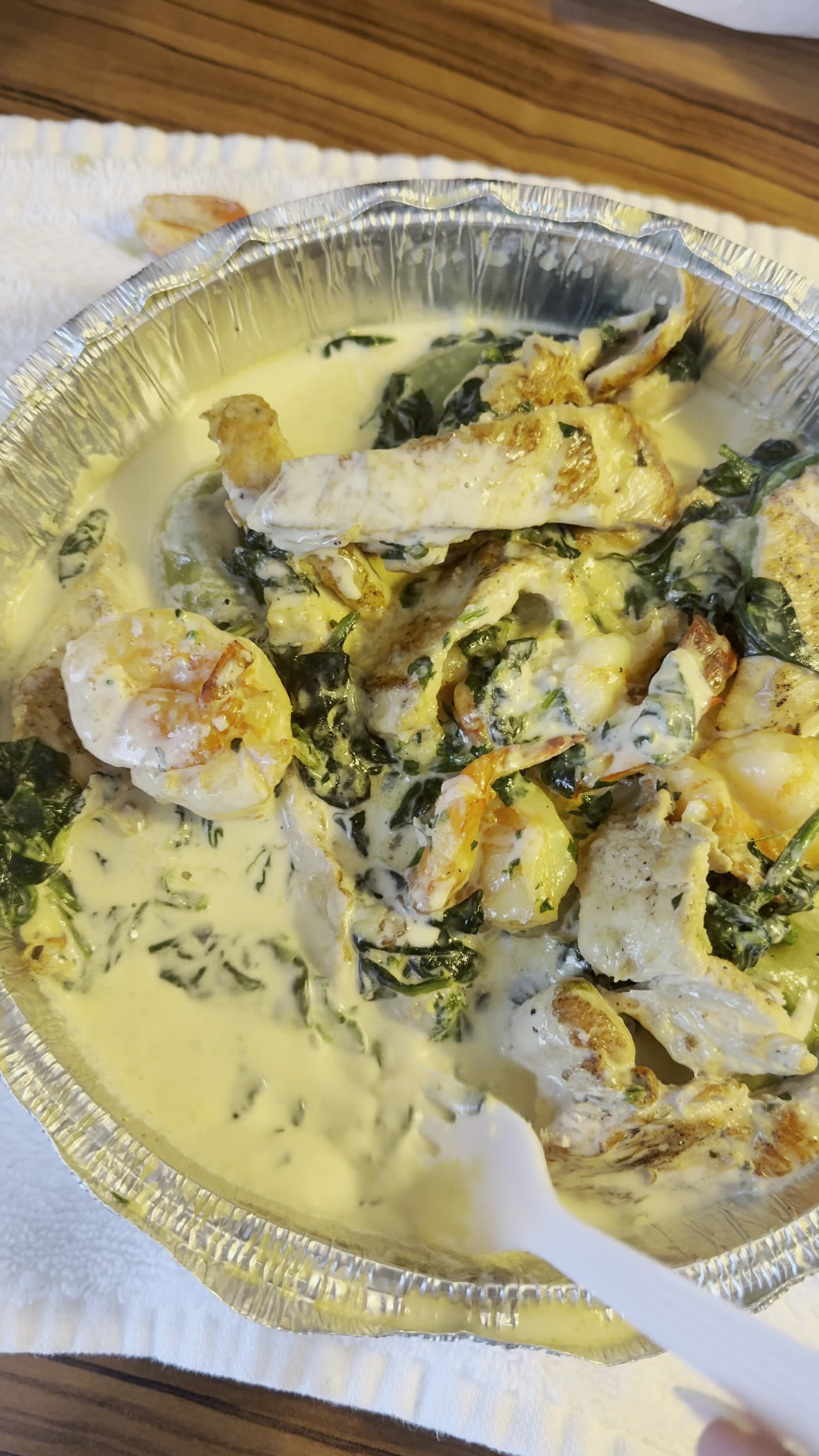 Update: they had plastic forks in the hotel lobby since they serve breakfast. I grabbed the fork and peeled the lid off the rest of the way from the ravioli, the shrimp was overcooked and the cream sauce looks really watered down. This is honestly unbearable and I can’t eat it. I wish there was a homeless person outside so I could give them this in the meal doesn’t...