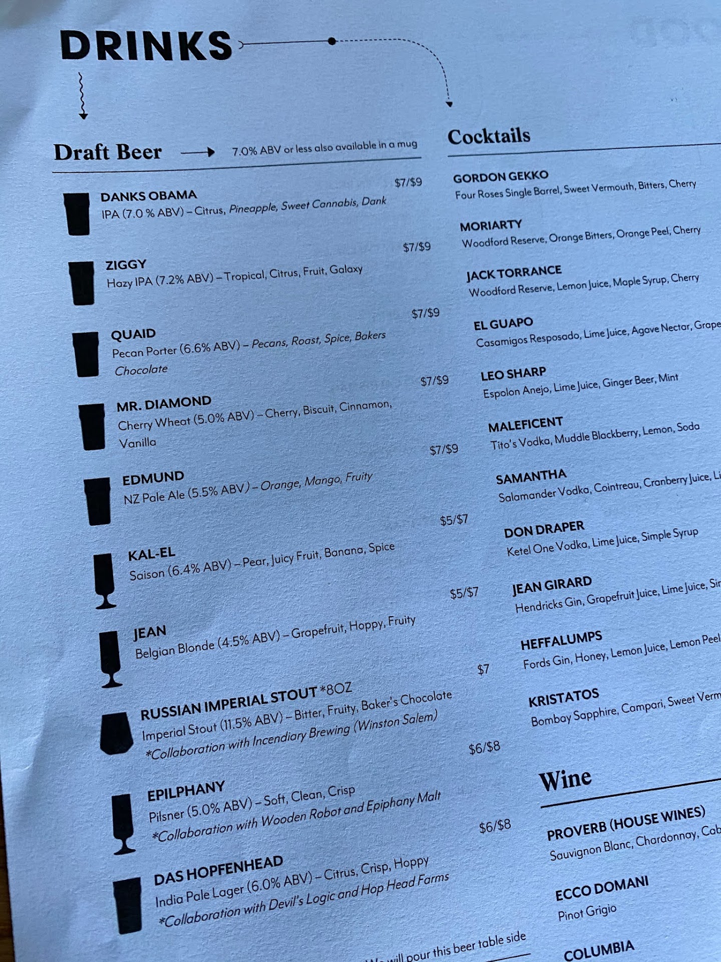 Protagonist first stole my heart when they opened their first location in NoDA. They have virtuous beer, chaste grounds, and an overall smashing milieu. Since I was so fond of the NoDA location, I just had to try this regenerated (new) and ameliorated (improved) venue located in Lower South End (LOSO). Protagonist LOSO is located on Southside Dr/Yancey Rd across the street from Queen Park Social (to the front), The Olde Mecklenburg Brewery & Biergarten (to the left), Sugar Creek Brewing Company & GoodRoad CiderWorks (to the right), and down the street from Brewers at 4001 Yancey (one of my fav places...review coming soon).