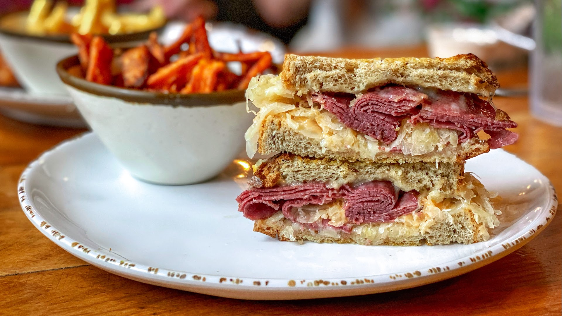 The menu has solid bar food. It consists of bowls, salads, tacos/wraps, burgers and sandwiches. We’ve tried most of the menu over multiple visits and the Cowboy Burger and Pimento Grilled Cheese are our favorite handhelds. The Chicken + Black Bean and Rice bowl is super hearty as well and worth a try.