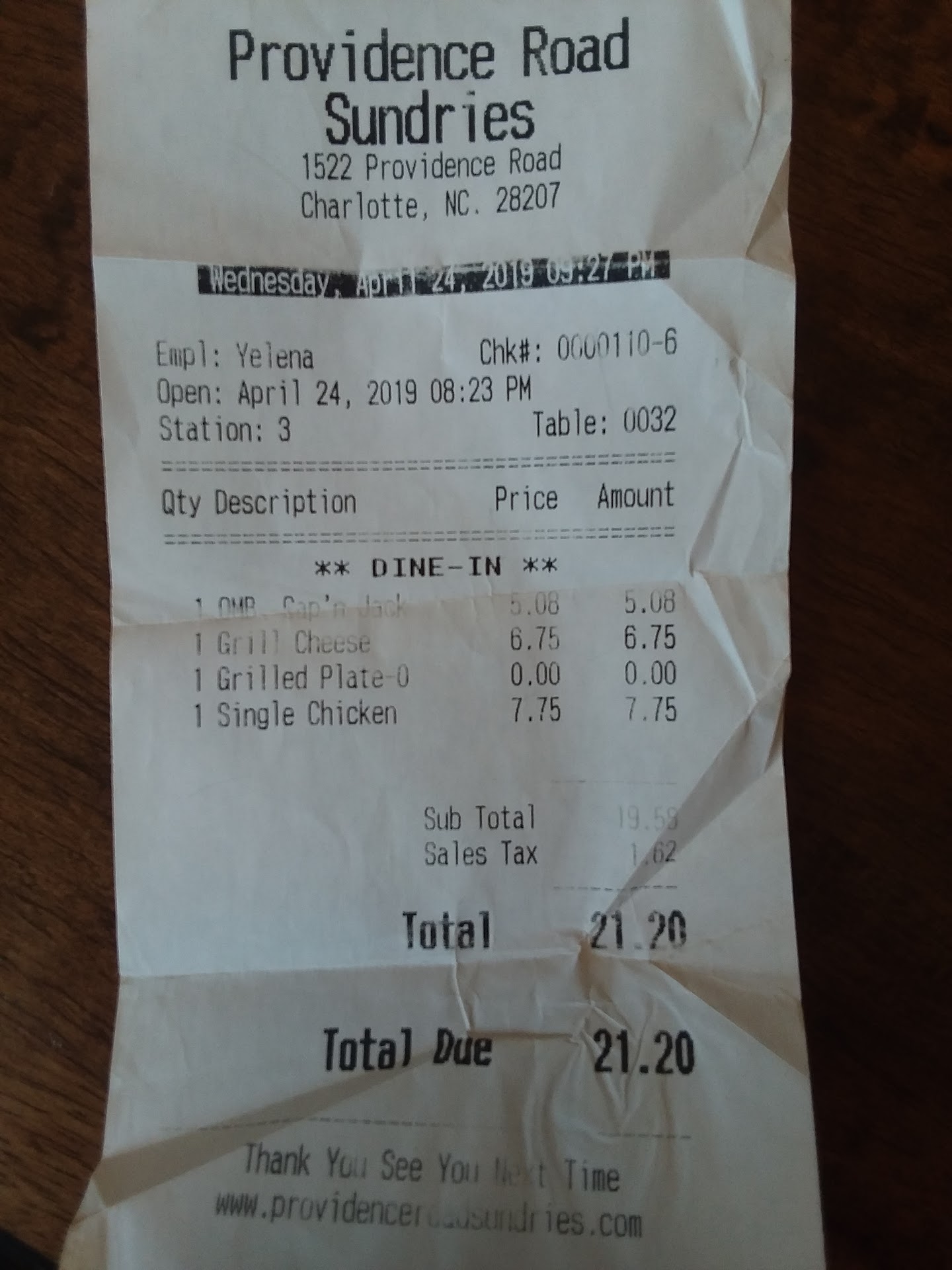 The food was just OK - far too much bread with respect to the other ingredients. However, when the waitress brought the check over, I immediately started laughing and called her back, thinking there must have been a mistake. She charged me $6.75 for the sandwich, plus a whopping $7.75 for the chicken add-on. I couldn't believe it! This number is not stated anywhere on the menu, and for reference, the cost to add chicken to a salad is only $5.00. So somehow I was being charged $14.50 for a grilled cheese.