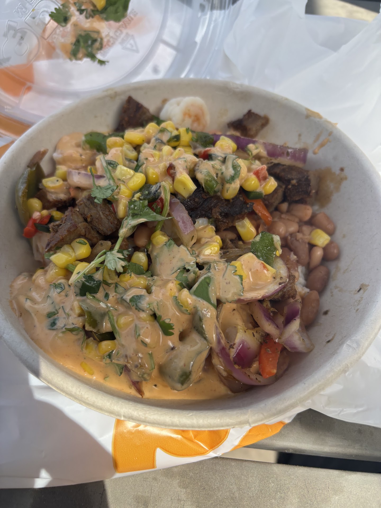 Read moreI ordered the surf and turf bowl. I got it with white rice, pinto beans, fajita vegetables, cilantro and corn. The rice was old or under cooked, the fajita veggies were mostly red onion and not fresh the beans were bland. The steak was overcooked and flavorless. The shrimp was also lacking flavor and water logged because they have it sitting in some kind of liquid. For $15 I expected way better quality food. As far as customer service…..
