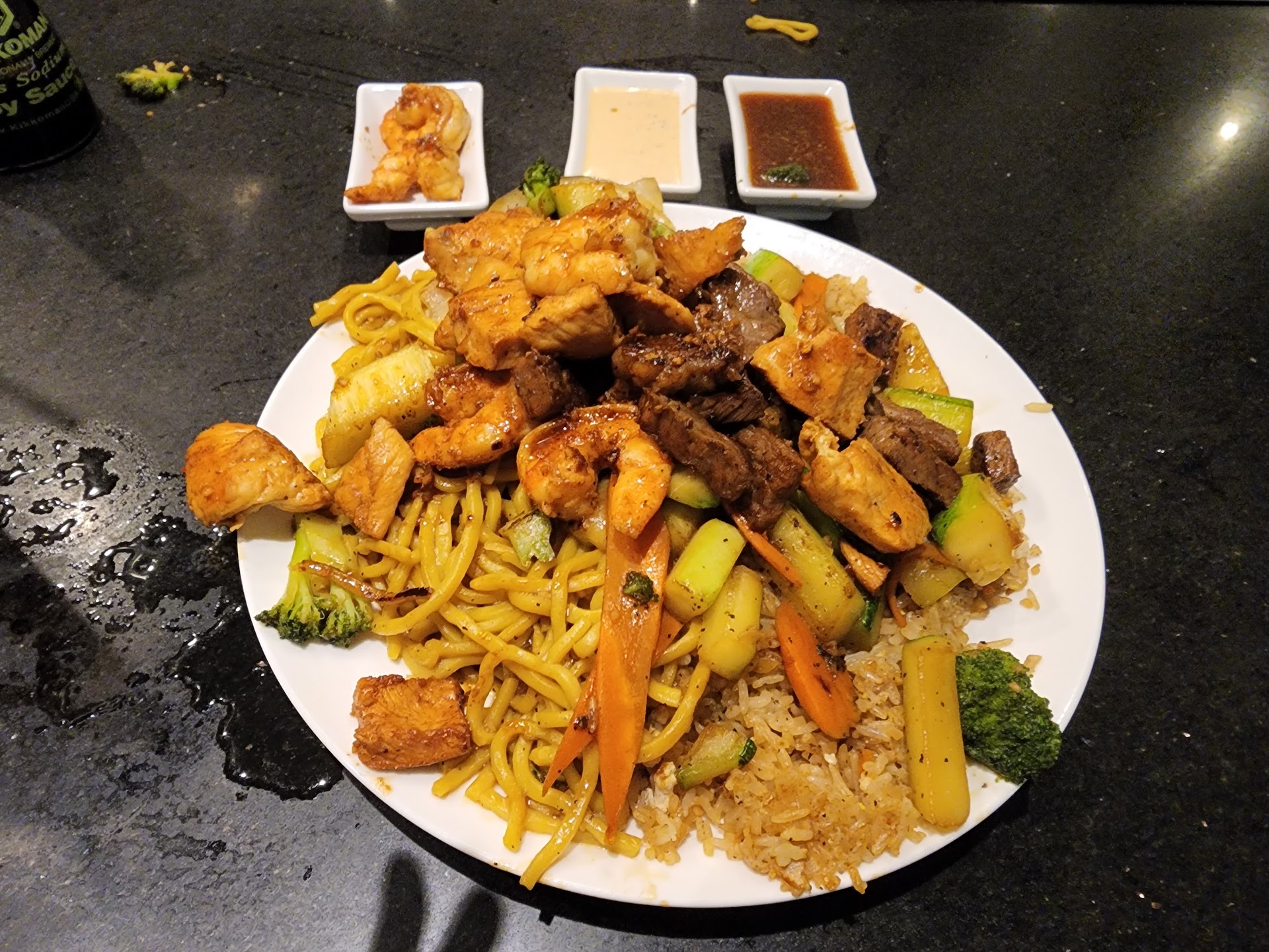 Read moreSo this place has a great vibe and aesthetic. Also, our chef was amazing and interactive and even had some new stuff incorporated that I hadn't seen before at hibachi. We were there for a birthday dinner and had chosen to eat at the grill. Our server and the overall cleanliness and staff vibe was terrible though! Our waitress did not come once to refill our drinks. She did not introduce herself. She seated us and came right back for appetizer orders but then only took mine and told my sister in law she would be back for hers and to "Hang on". She never came for it and brought my app out without ever checking with the rest of the table. Then when she did come back she wanted to take entree orders. My sister in law asked if she could place her app order and the waitress said "I'm taking all orders for whatever you want and don't have right now so I'll get to you in a second". So rude! Then she refilled regular tea over my aunt's alcoholic beverage so it completely ruined it and when my aunt asked to have a fresh drink made she said "I can get yours in a little bit I have to go put in these other people's order right now and you're going to have to wait anyway because the bar is backed up". I mean I've never had a waitress that blunt and rude before. Like I said the look of the place is great and our chef and food was amazing but the waitress kind of ruined it for us. We had brought a cake for the birthday and she brought us out to go styrofoam for our celebration and said ok bye. They forgot my sister in laws filet for the grill and the chef is busy cooking the rest of our food in front of us and asked her to go get him our filet but she never did so he had to leave the grill and go get it himself. The worst part was that on the check they had the audacity to include automatic gratuity of TWENTY PERCENT after that terrible service! Honestly the food was good but the service so bad that I probably will not risk it and won't eat here again. Only gave 2 stars...