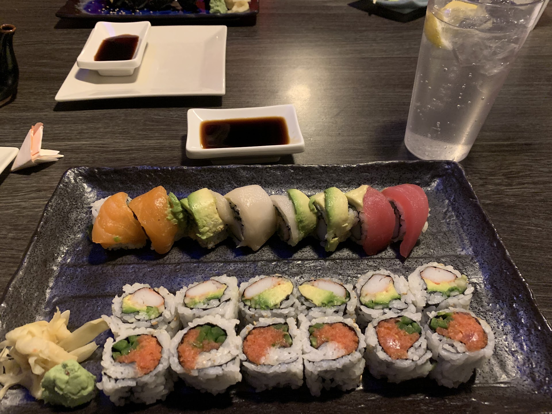 We arrived at 5:30pm and we were told to wait 5 minutes, but were sat within less time. We were surprised to see the place was nearly full with every booth and table taken. Our server was so nice! I appreciate her writing down our order and repeating it back. We didnāt hold back, having tried their edamame with salt and miso soup which were excellent! Then the rolls: rainbow, California, spider, and spicy tuna jalapeƱo. Delicious quality, good sized pieces of fish on top of the rainbow roll, crispy and fresh spider roll, well mixed spicy tuna and addictive California roll, my daughter couldnāt stop! She ate hers and half of mine! Haha We then all teamed up on some chicken pad Thai and it was out of this world! Was not expecting that!! Finally their fried cheese cake was unlike anything weād had before. Like an elephant ear from the carnival with warm cheesecake inside. It was a single slice and great for us to share.