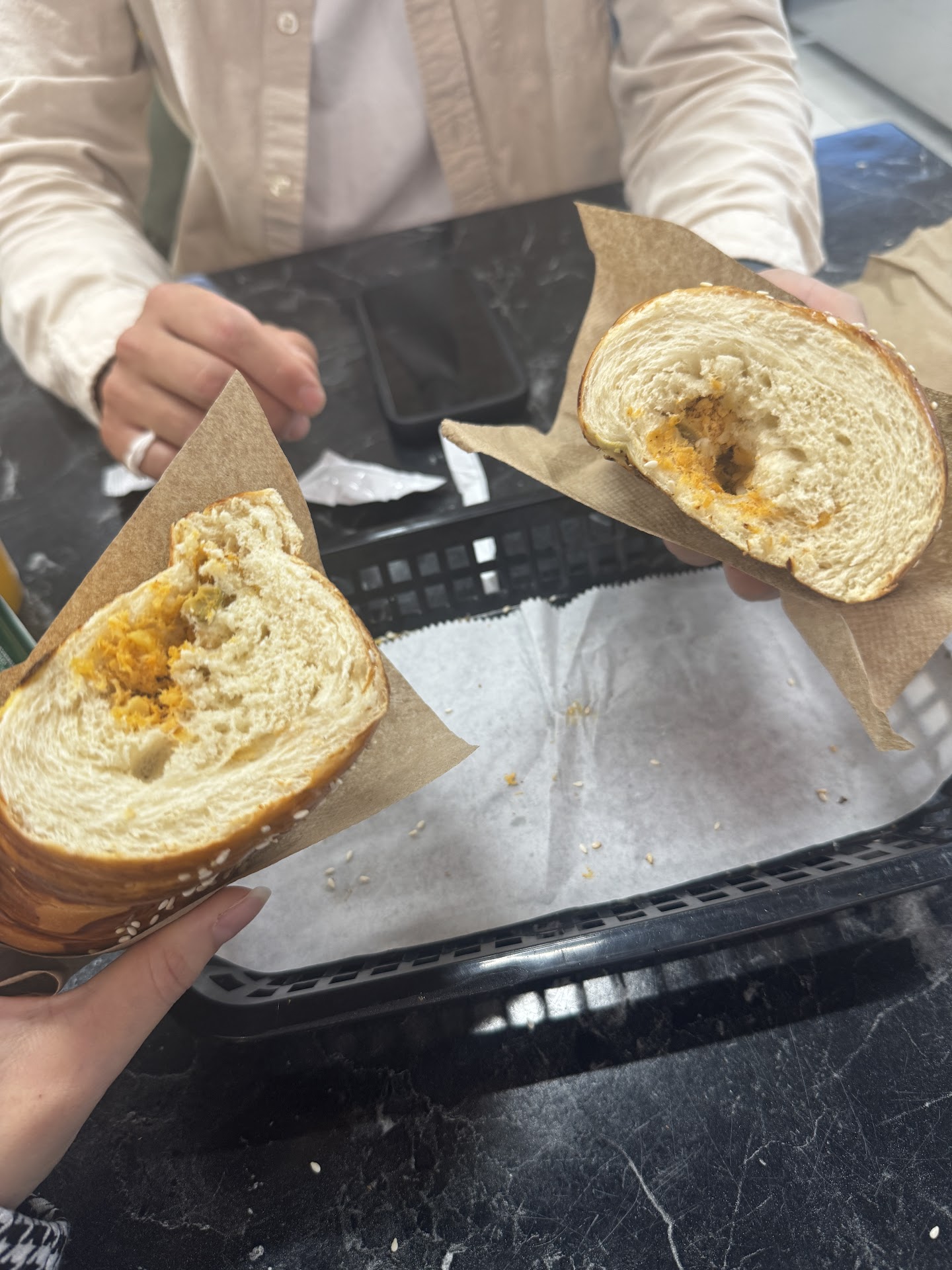 Read moreI visited this Brazilian bakery today. The place is beautiful, but as soon as I walked in, there was a really strong chemical smell, kind of like medicine, which was honestly very unpleasant. It felt strange, but I decided to stay since I came to eat there. The smell was overwhelming though, and I honestly don’t know how the staff could stand being inside. I ended up ordering everything to go. The woman working there recommended a chocolate cake, it was really delicious. She also suggested a sandwich with cheese, I think it was ham, and egg, which was very tasty too. I also got a chicken empanada, but to be honest, it was my least favorite out of everything.