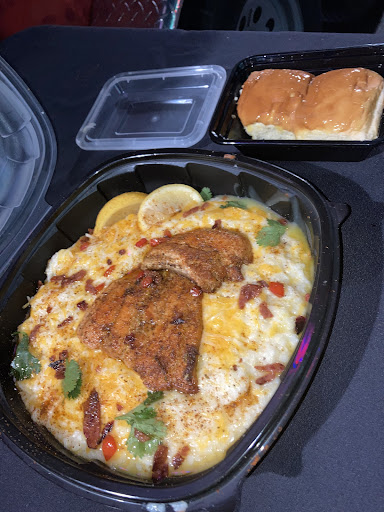For $28 I was disappointed. I was very hungry, Iām visiting Charolette NC, driving along Sugar Creek Road when I saw a guy in a Grey shirt, Black pants, and Black sunglasses with a full Black beard standing outside of the truck taking orders. I parked, walked over to the menu, it is extensive, I ordered Salmon, shrimp and grits with cheese, turkey bacon, scallions, red peppers, and parsley with a Hawaiian roll. I get to my family house, sit down to enjoy it, only to taste it. The grits were watery, the salmon was thin less than 4oz piece, but tasted good, the 4 31-40 size shrimp only had paprika seasoning on the top of it, all the rest of the ingredients were placed in the middle and sprinkled with paprika.I guess I was expecting more, but for $28 I didnāt even want anymore after 2 bites of the watery Grits. I traveled 8 hrs to visit family and thought Iād give this Black owned food truck a shot it. So mad and disappointed!!(Please...