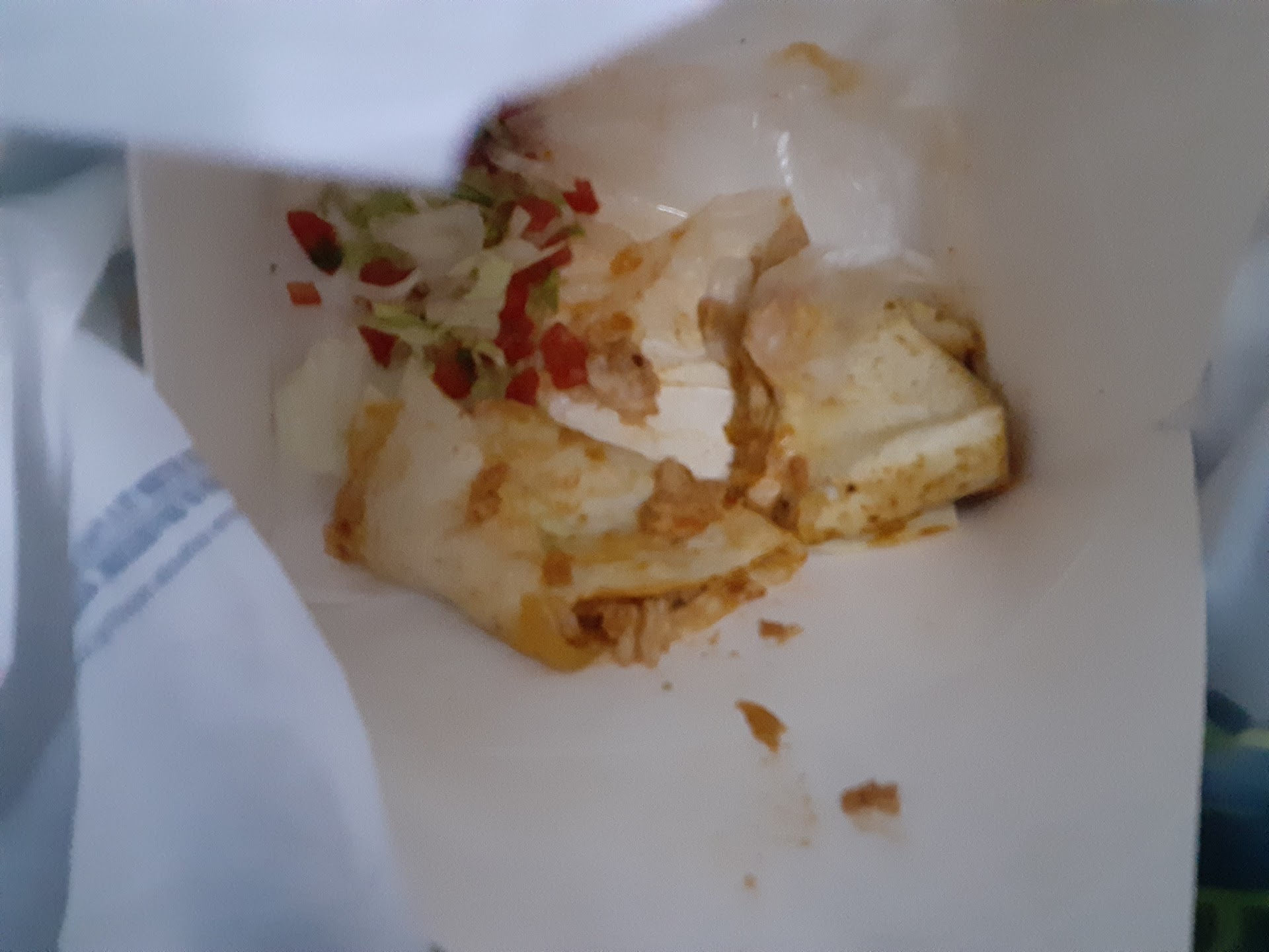 Oddly empty for between 5 and 6. Placed the order and went to prepare our drinks. No unsweet tea available. Getting the salsa....hmmm the mild salsa is completely empty. Go to the tables, the place is empty yet tables and chairs are not clean. Clean our own and visit the restroom. The door is difficult to close which I suppose is a good thing since there is no lock. One has to stand guard as a few customers enter the store. General cleanliness is lacking, spatter on the walls, glass and floors that match the tables and chairs crumbs. Still had a 98 5 score. Food arrives wrong. Brought a salsa tub when it should be guacamole and chips. Really fixed once we get the point across. The corn tortilla was both dry and greasy (how do you do that?) Taste of contents was fine except the quacamole seemed flat, missing something.