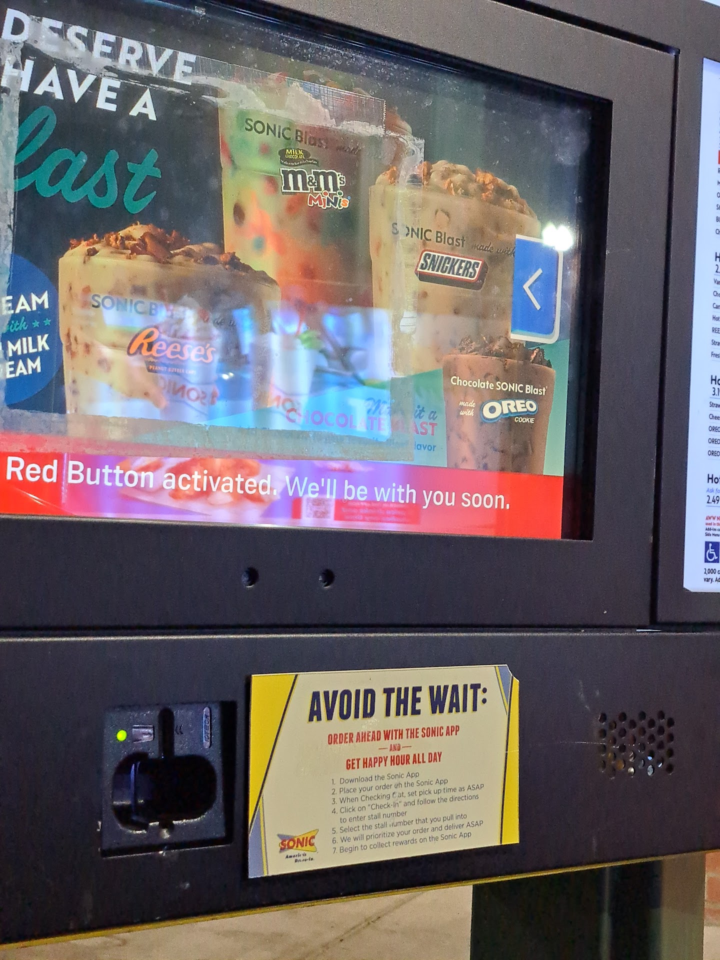 I went to sonic a few days ago my burger came up to about $5 and 40cents " they were sold out of onions" they are usually limited on the actual menu items. the server came out and took my $6 gave me my burger and walked away without giving me my change... Now it wasn't about to change it was about the principal. Btw I always tip.
