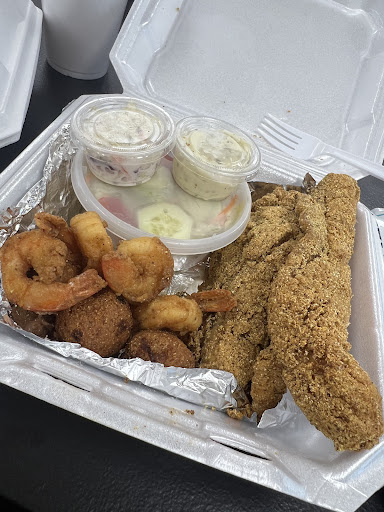 My expectations were high based on their ravings of it. Unfortunately, I feel I was let down. I ordered the fish and shrimp with hush puppies, coleslaw, and a side salad. The shrimp was amazing, but the fish was extremely overcooked and was borderline dry. I was so mad that the cup of coleslaw was only in a condiment container. It felt like legit 2.5 bites. It was really good and wish they offered more, especially when paying $22 for this.