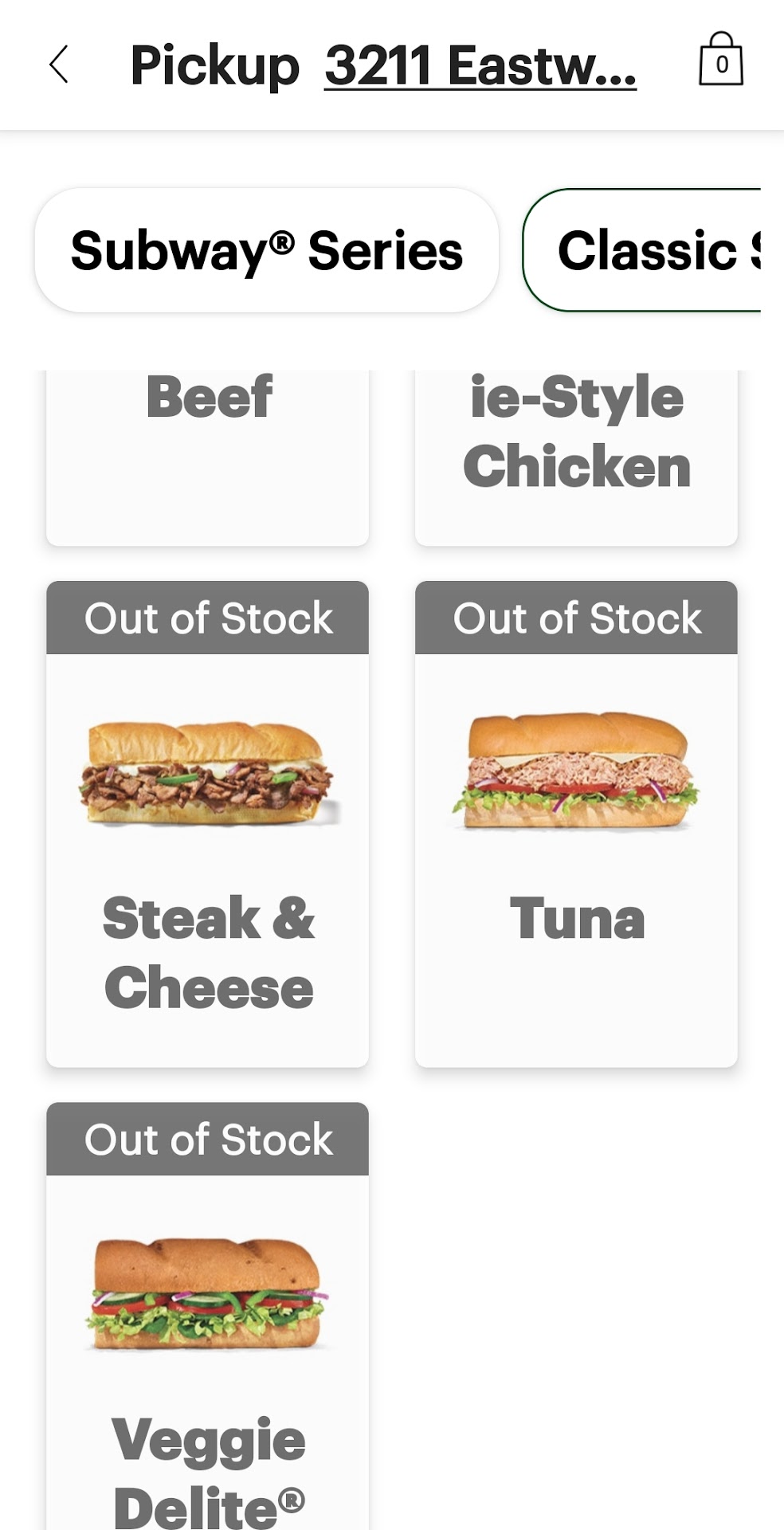 There is a BOGO, online deal going on, but Drew, the owner, does not want to participate. This is a SUBWAY wide promo special and he chooses not to allow the special. So he shows all items as being OUT OF STOCK, so that you cannot order on line and get the buy one get one free deal. All the other stores are doing this, so why is this store not participating. I will NEVER come back to this store again.