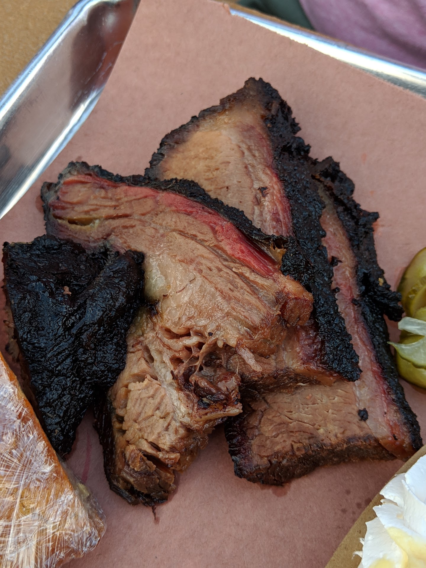 The brisket was the same way, very meaty, not salty, light flavor. Once I took them home and put some of my regular barbecue sauce on them I was able to enjoy them a lot more.