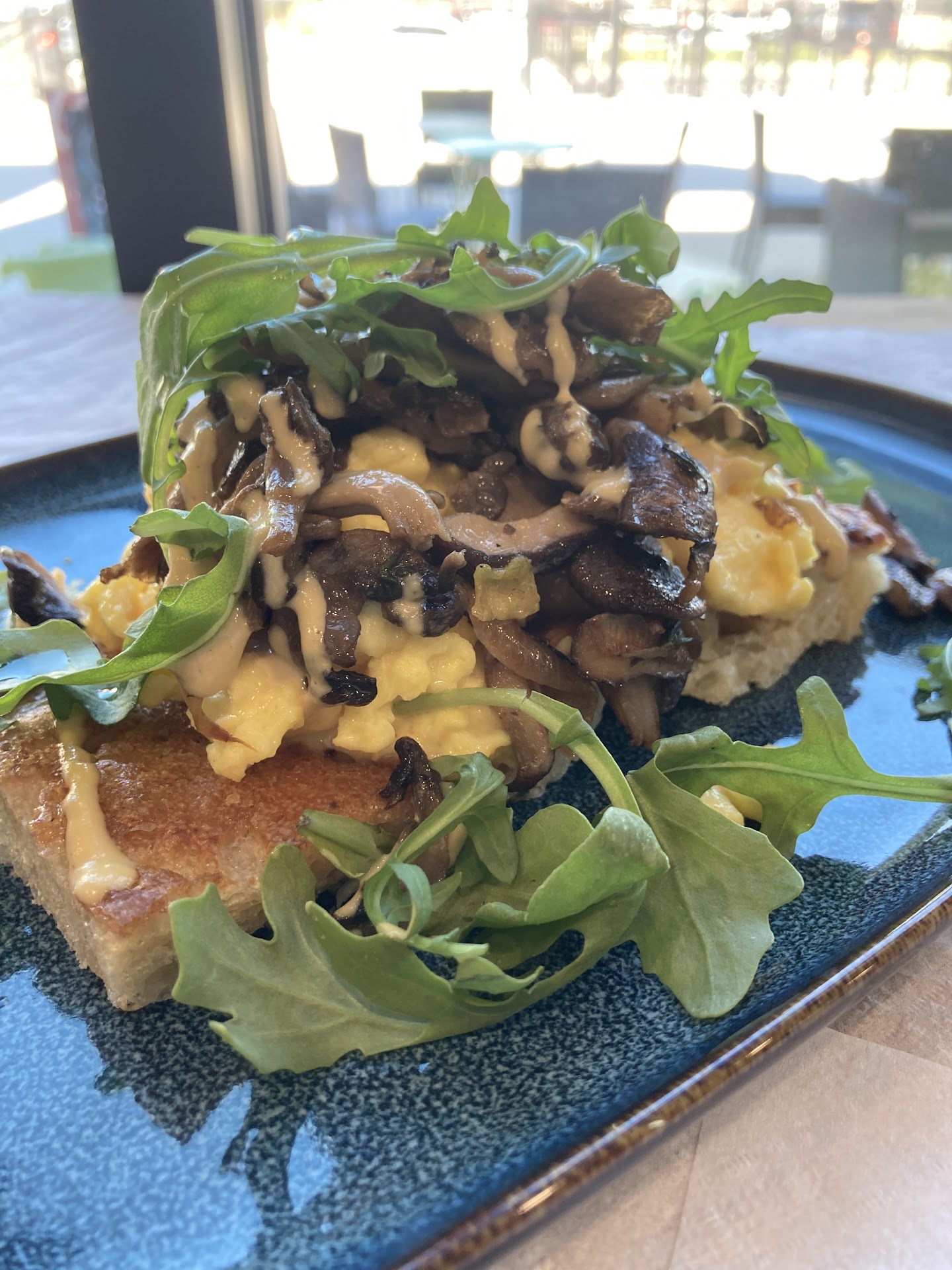 And the mushroom toast isâŚexcellent! Nothing was over cooked or undercooked they put some sauce on top of the eggs and mushroom that hit the spot really well.