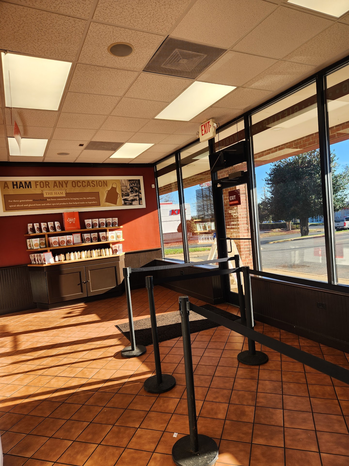 Read moreMoving to a new town we expected Honeybaked to be a bit of an ordeal like in Austin, TX. We haven't had one in a couple of years due to the It's Not worth the trouble factor. We were Thrilled with our visit! About 15 plus people in line, plus a police officer. I jokingly told my family to pray for me they refused to go in. They had at least 6 people working there! Pleasant people! Fast, knowledgeable people. Asked what we needed, retreived, viewed ham. Decided bigger. No Grumbles! 2nd was a winner. Paid, left. In about 10 minutes, probably less. They were Really well stocked Tuesday night before Thanksgiving! And I really appreciated how they opened the foil Just enough to see well, but away from the sneeze/cough zone etc. Purposefully. Yay! Our ham was exceptionally great too. Win win win! We'll be eating a lot more delicious...
