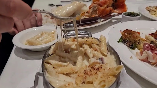 We kicked things off with a trio of apps that absolutely delivered: ⨠Crab Cakes â golden perfection on the outside, rich and moist inside with chunks of real crabâno filler nonsense here. ⨠House Meatball â tender, slow-simmered in a velvety marinara that tasted straight outta Nonnaâs kitchen in Naples. ⨠Jumbo Shrimp Cocktail â chilled to the perfect bite, paired with a zesty cocktail sauce that had a clean horseradish snap.