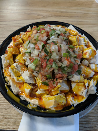 I got a large chicken rice bowl with a Thai/Curry sauce combo. He ended up giving me an extra large bowl instead and it was so much food! I got multiple meals out of it. The food was amazing and flavorful. I also got a side of fries which was not necessary, but also delicious.