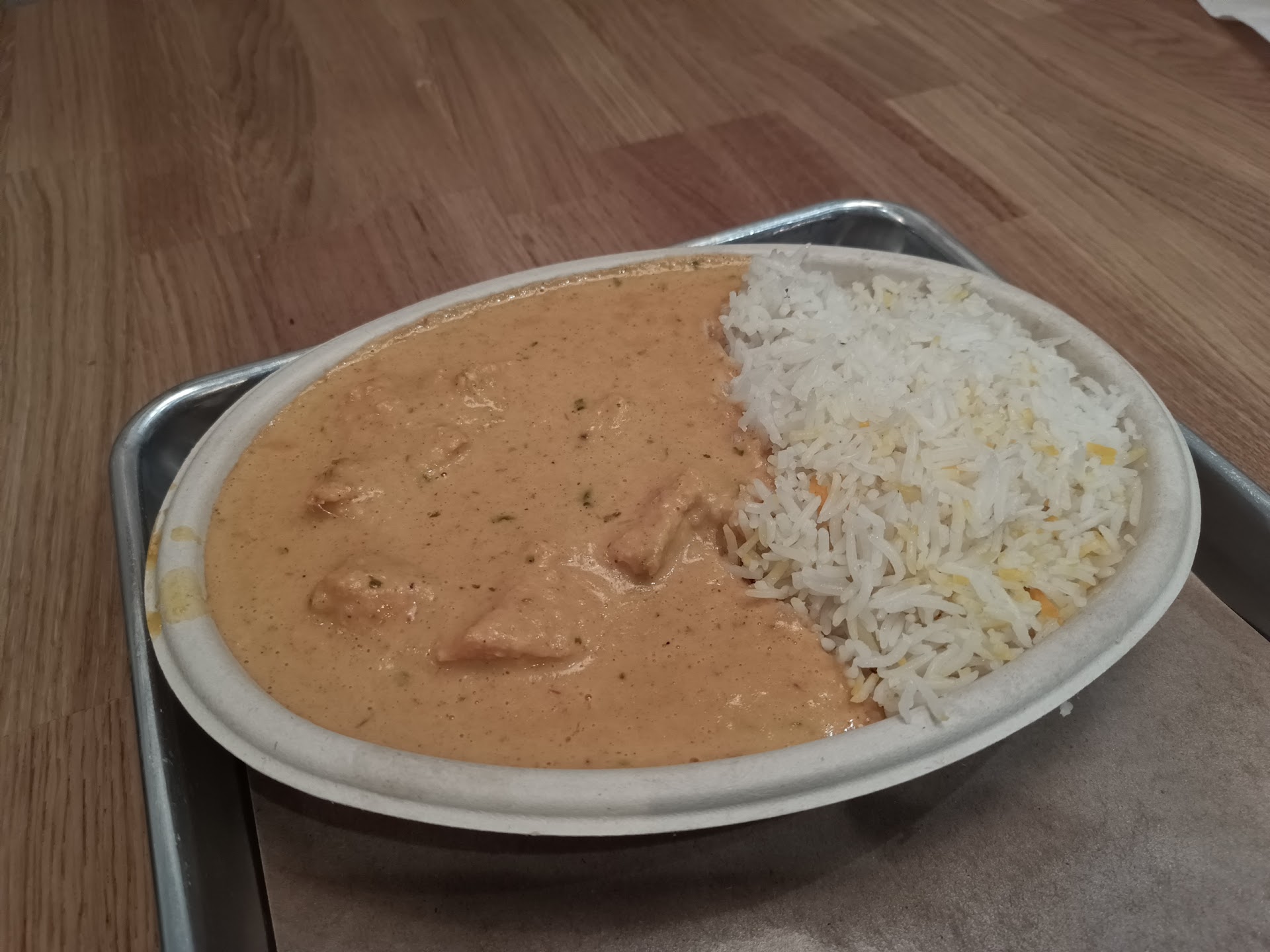 Yeah, I had high hopes. I had to come back. I ordered the Tikka Chicken and a side of Samosas. While I drove home, I devoured the Samosas. They were delicious. They were huge, flaky, dense, moist, and packed full of flavor. Honestly, I had never had a better Samosa—the potatoes were mashed with seasoning instead of cubed or chopped. I had never had it like that. I was so excited as I drove. I reside 25 mins away. I got home, and they gave me someone else's food. It was butter chicken. OK, no problem. I'll try it. However, it was flat. I mean no flavor or spice. In all fairness, it wasn't what I ordered, and it was intended for someone else. Maybe it was how they ordered it. The next day, I took my order back. I had eaten 2 spoons fulls. I wasn't given any pushback. They promptly replaced my Tikka at no cost. I showed them the bag with a different name. I also got 2 orders of Samosas and a lassi, too. I got home, and it was the same thing. It does have a tomato base, but no spice or flavor. It was very, very soupy. I was shocked.