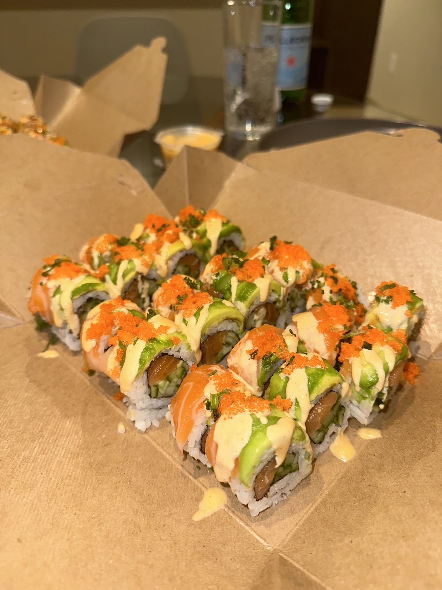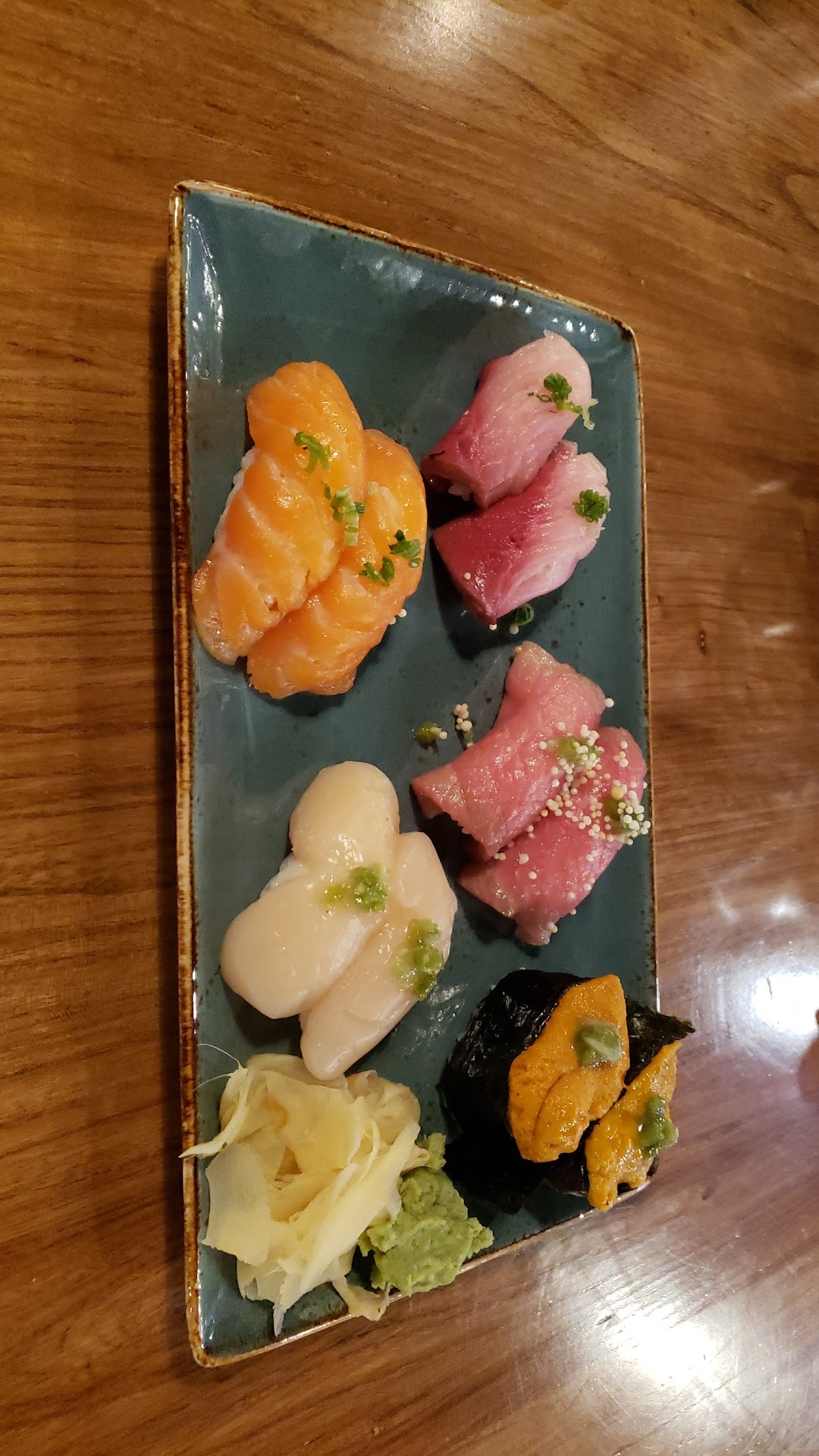 We ordered a variety of different rolls, crab rangoon, an array of nigiri, and dessert. The specialty sushi rolls were super tasty and how could you go wrong with crab rangoon. I always appreciate the creativity that goes into americanized sushi rolls but my go to order is typically going to be nigiri. I ordered yellowtail, toro, uni, salmon, and scallops. Everything was super fresh and the rice was cooked perfectly. I think the nigiri could've done without the wasabi and toppings but this just comes down to personal preference. I'll sometimes order certain nigiri with caviar but ultimately, I just let the chef decide on how they want to present their sushi. I have since learned that this practice of adding wasabi and other accents is normal, but most places I have gone to don't do this. So, it may just take more time go get accustomed to this before making a decision on whether I like it or not.