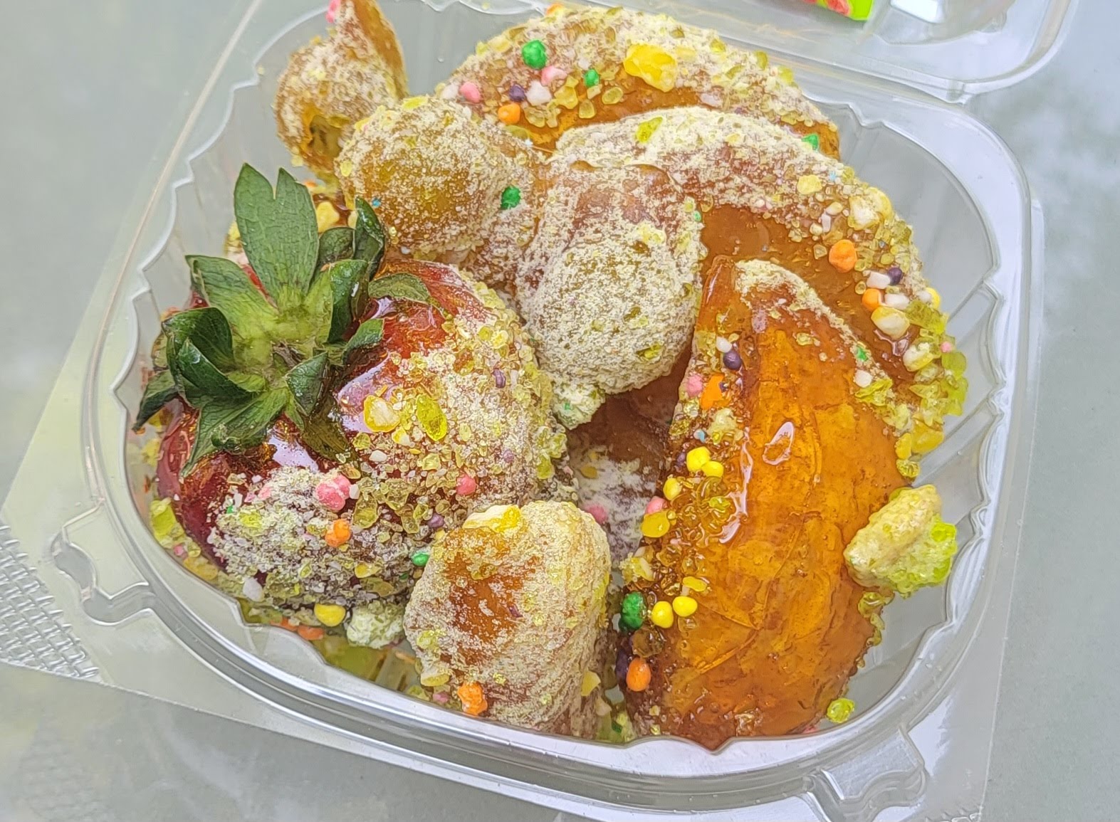Read moreThis was a cute concept. They had a lot of vintage aka old school candy and chips and pop. They even had some limited edition pop as well. I went there mainly for the candy coated fruit. I did get the fruit bowl which consisted of pineapple, strawberries, oranges and grapes. It was pretty good. Definitely sweet and will definitely stick in your teeth so make sure to brush afterwards. They also had slices of cheesecake and cake. I didn’t really care for the cheesecake. It was a little too thick for me so kinda without the topping it was flavorless. The place is kinda pricey as well but it’s a cool treat. The young lady inside not sure if she’s the owner or not but she was very nice and informative so they get 5 stars for service. I would definitely say check...