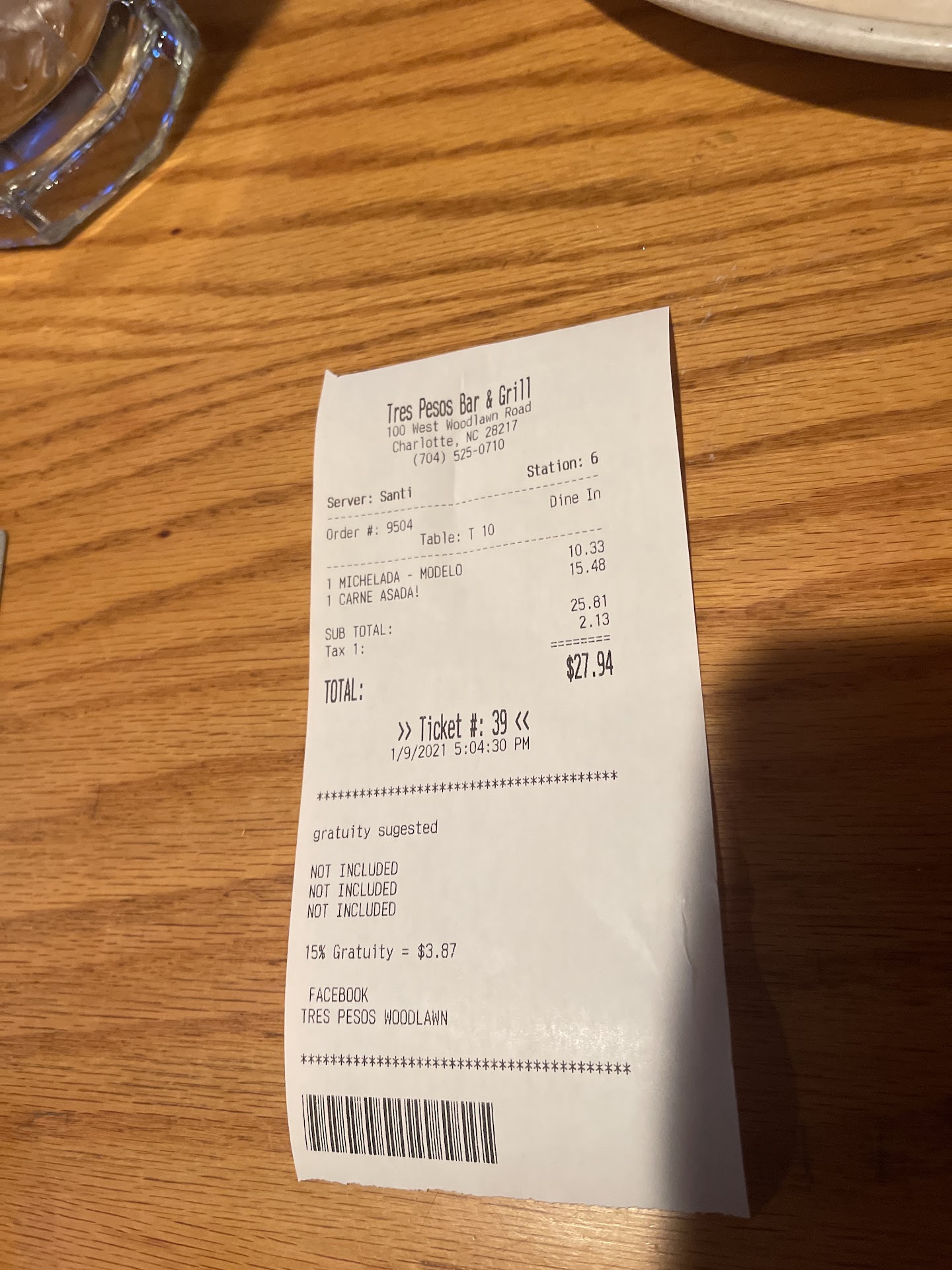 Alright so I visited this location twice while in Charlotte. My first visit I was greeted by a woman who sat me at a table. The waitresses on this specific day were not friendly and even told me to hold on while trying to ask for lime. From my experience of waiting tables you don't tell paying customers to "hold on"and then not even come back. The only friendly face in the restraunt was the bartender. She smiled and did acknowledge your presence. So if you do decide to try this place out you should probably sit at the bar with this young lady. Now on to my second visit, I walk inside the doors and get looked at by three different waitresses including the sweet bartender who at that time had something in her hands and was headed back for the bar. She again smiled and said hello to acknowledge I was there. The other waitresses looked at me and never attempted to seat me. So while I am standing there looking like an idiot a sweet Hispanic couple come inside and are standing next to me. Immediately the waitress walks up to them and in Spanish ask them if 2 would be dining. The couple replies yes and she proceeds to take them to their table. So at that moment I was just skipped in line and I felt as if maybe she did this because the couple was Hispanic and to her I appeared to be white. Little did she know I may appear white but I am Mexican as well so if that is the case she was wrong in so many ways. So I stand there a few more min after being skipped when this young lady comes around the corner and asks have I been helped. I told her no and that I was just skipped and ignored by the waitresses. So anyway the young lady showed me to a table where she took my order and provided me with the best service Possible. At the end of it all I hope the waitress that decided to look at me and skip me for the Hispanic couple learns a very valuable lesson. The young lady that served me and sat me walked away with a 20 dollar tip. She deserved every dollar of it as well. Good job to my waitress and to the bartender for doing exceptional. Unfortunately for them, I will never eat at this restraunt again and would recommend anyone looking for Mexican food to find...