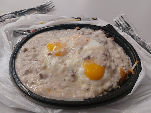 Read moreIt was a waffle house, so What can one say🤷🏽♀️? I don't usually eat there, but family was visiting, and THEY wanted WH specifically. Plus, my daughter had to catch her flight ✈️ soon⏳. We had just left a waffle house that had standing room only when we drove up, so we left. We stopped at Two other restaurants (Metro diner and IHOP) that had long waits, & we left...⏳ It was a Sunday morning...😳. We ended up at This Arrowood Waffle House, which was not crowded, so hey 🤷🏽♀️. There were two empty booths when we entered, but they were both filled with dishes from whoever left. No one on staff said a word to us, not hello, not welcome to Waffle House, not we'll be right with you, not goodbye, no Nuthin'! I probably would've left if I was by myself. It took about 10-15 mins for the tables to get busted and clean, & that's how long we stood waiting without a word. Btwn looking at those unclean table sitting there too long & no one saying anything, needless to say, I was getting a bit hot🔥, but I just kept quiet so as not to ruin family time together. Again, this was a waffle house, so🤷🏽♀️‼️ We sat as soon as a table was cleaned off. They brought my niece's order out wrong a few times. My son's order came out as the rest of us were finishing up, & he only had a breakfast biscuit👁️👁️🤦🏽♀️‼️ They did take it off the tab at least! I'm guessing this is why I don't frequent...