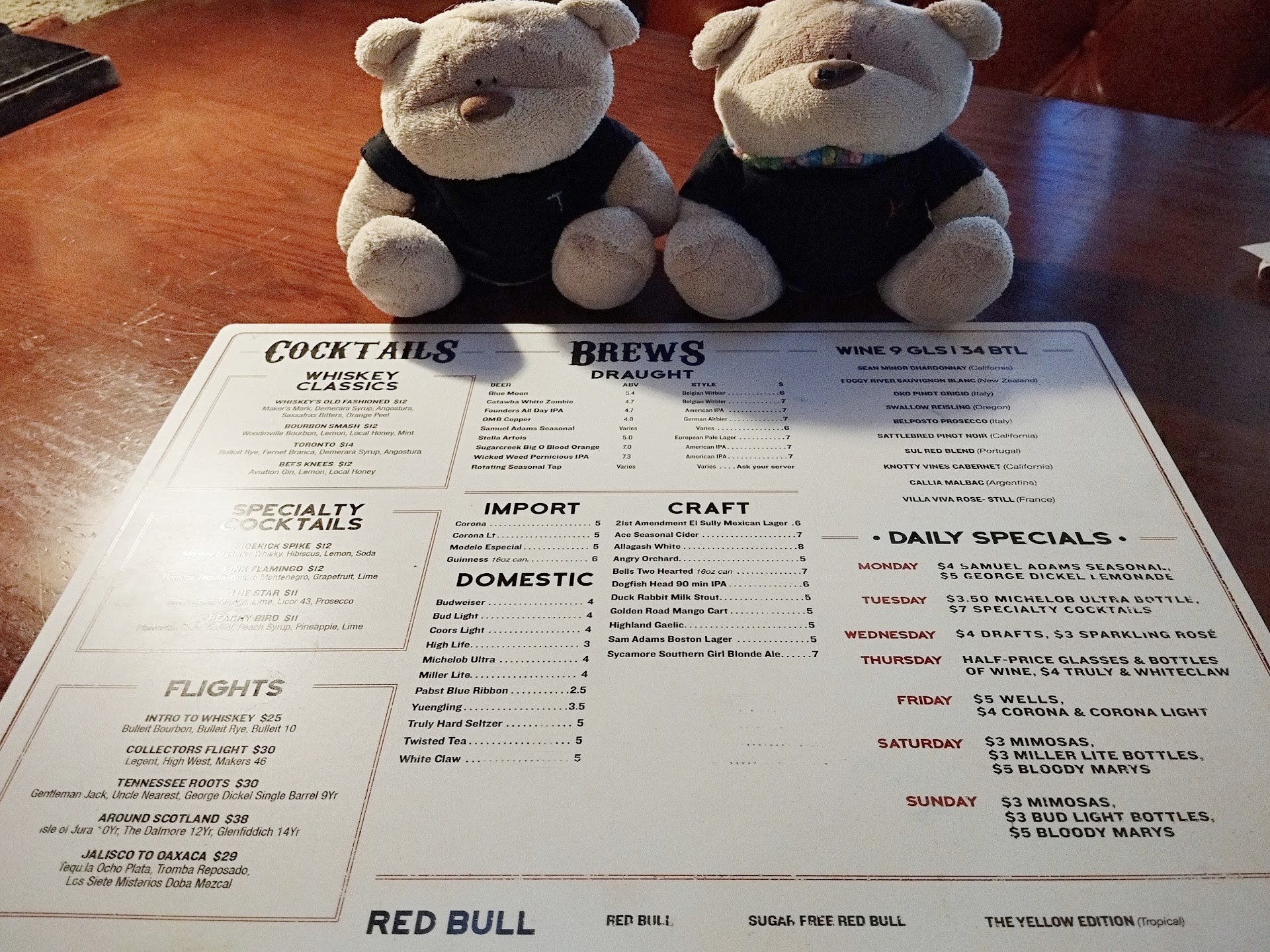 While scanning through the menu, we noticed a section known as “Daily Specials” at Whiskey Warehouse with deals as follows: