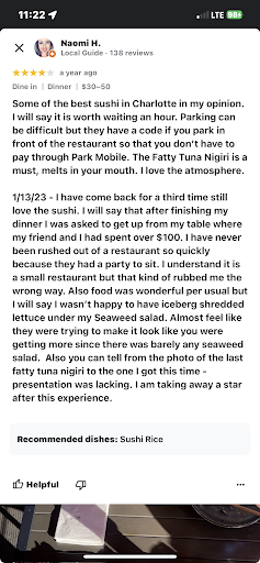 Oh it gets better, I’m already in a bad mood let’s just add the host/waiter and hostess coming by my table one after the other repeatedly asking as I’m looking at the menu if I’m ready …. If you got to my picture of my previous review from last year this isn’t my first rodeo with being rushed. Let’s just say we were there in less than an hour and I spent $70 just on my plate of sushi… I rather just to Oku and pay over $100 for my plate.