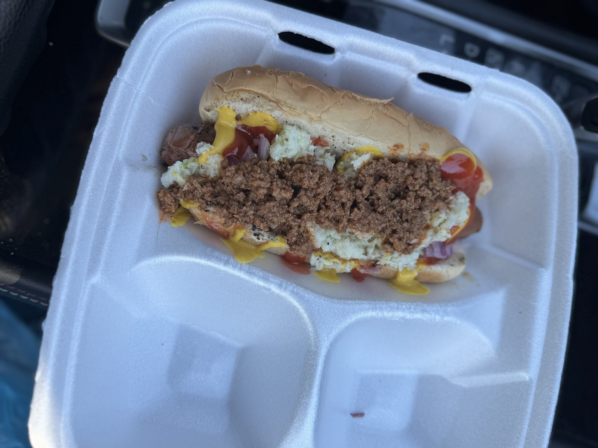 Everyone gets a warm greeting and a dog made to order. I was impressed. Usually, itās āhereās your dogā and "the condiments are on the side. Serve yourself." Not here. He asks, āWhat would you like on your dog? Chili, coleslaw, onions?ā and makes it exactly how you want it.