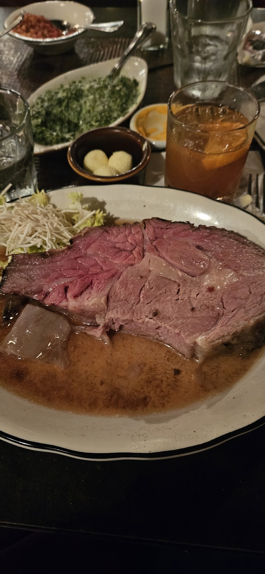 The prime rib here is outstanding, although I'm glad they have salt and pepper on the table, it was a little bland. The doneness was perfectly medium rare as ordered.