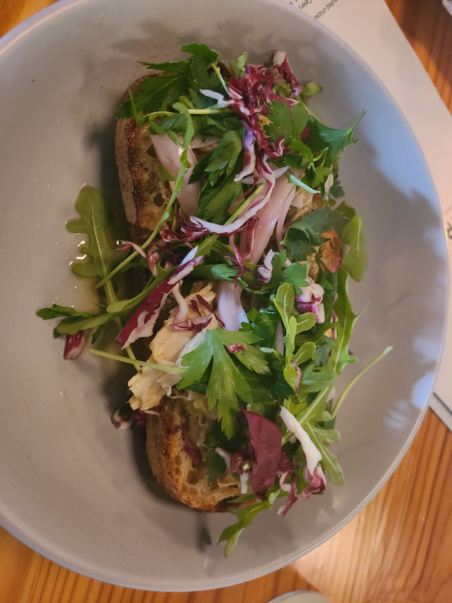 Before I give my review let me acknowledge the warm inviting staff who instantly made us feel welcomed. Ok let's get into the food...The starter included a delicious surprise in the chicken confit. I am sure you will not be disappointed if you try this open faced sourdough chicken delight with shallots. Next stop was a rotisserie chicken (dark) paired with braised collards. The skin was crispy and the chicken was juicy as expected. Everything tasted just as good as it looked if not better. The warm environment invites conversations and family time as there are no distractions like television. The chef (from Romania) was friendly and knew exactly what he was doing. The mac and cheese had a delicious pecorino that is the spark of the dish. The olive oil cake with fig whip and candied kumquat made our day! This cozy restaurant is a must visit and you are...