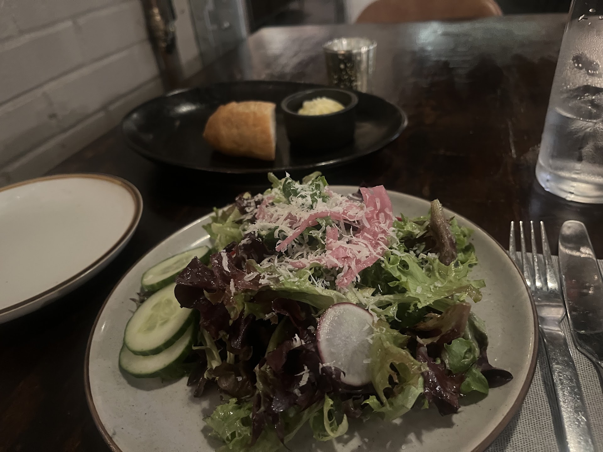 Side salad and bread( comes with all their entrees!) -I got the sherry vinaigrette and those two were nice to munch on while waiting for my steak.