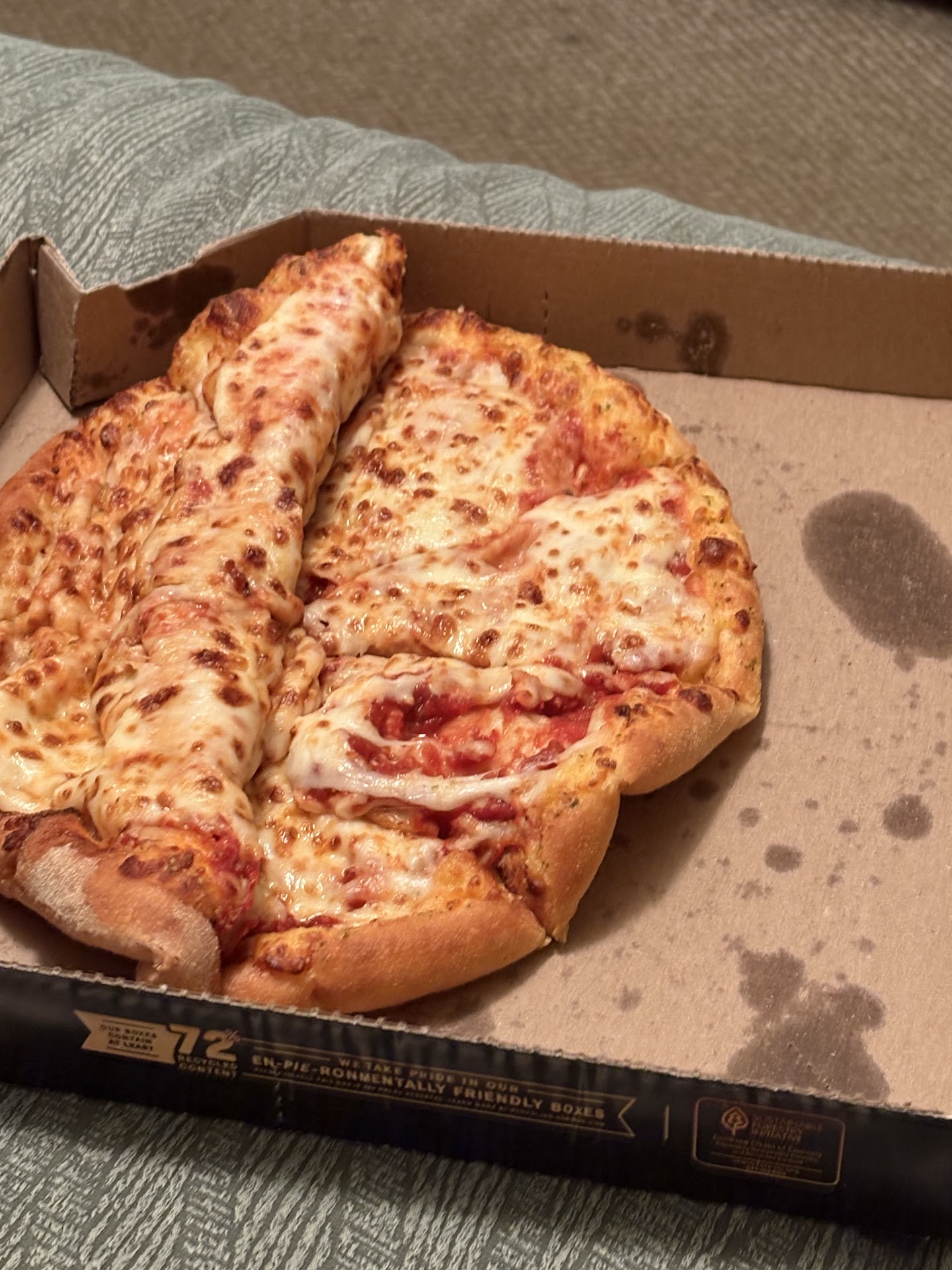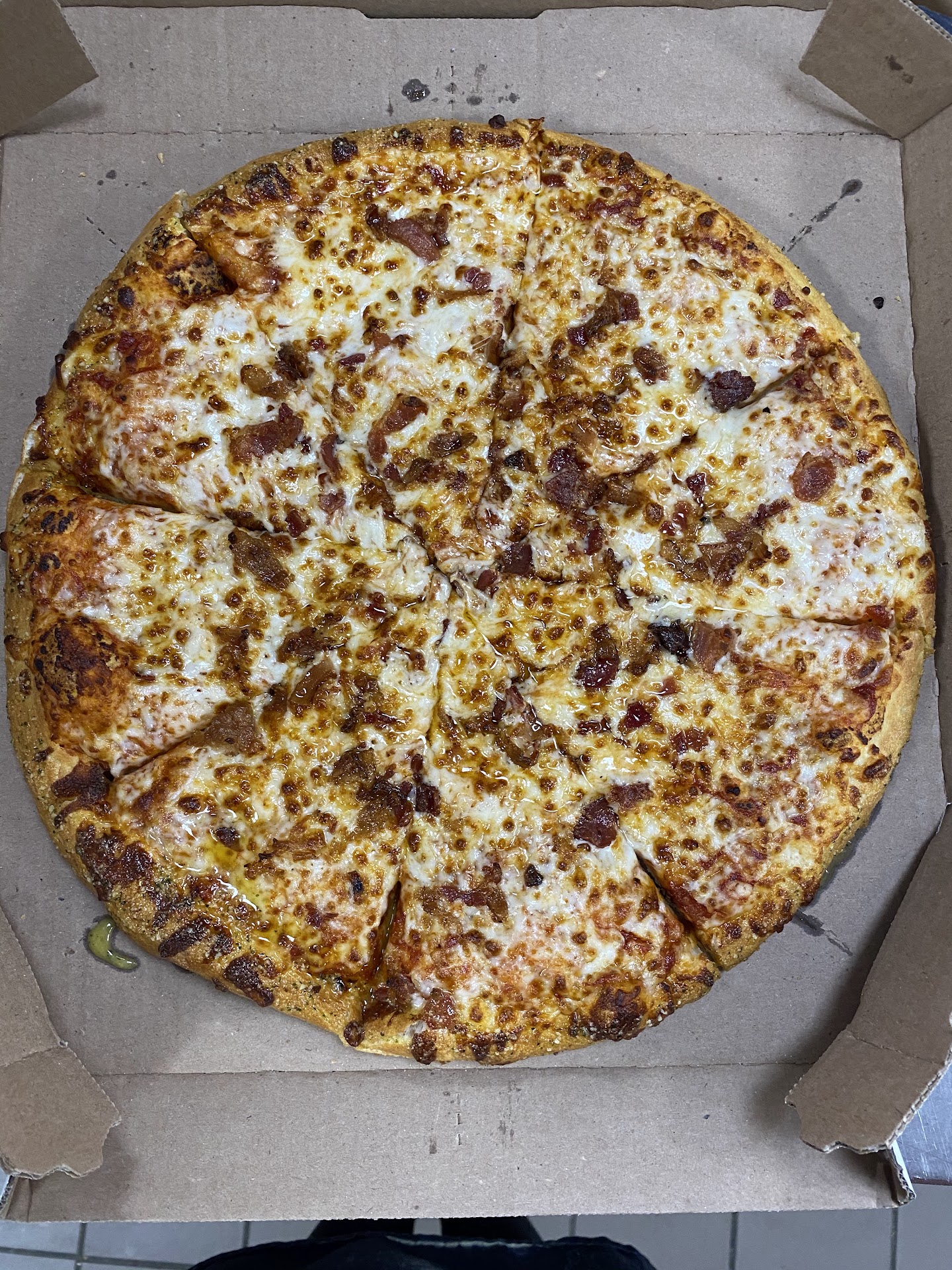 Literally just ordered store #4243 Iām glad I was here to glance at pizza before driving off. 2nd time our thin crust was burnt. Took back inside opened the box and the guy at the counter who clearly was frustrated said āWhatās wrong with it?ā Picked up tongs and said ā Itās not burnt on the bottom itās gonna come out like this every timeā I politely told him please check out history we order the same thing every time it doesnāt be burnt like this only this time and the last and the last time was WAY worst. Shockingly his next response was ā Well she made it and pointed to the mangerā. Followed by ā So what would you like me to do?ā The manger seemly busy stopped what she was doing and stepped over looked at the pizza and saidā I apologize I donāt know WHY our oven has been BURNING. the thin crust like this our General Manger is on His wayāā At this point from my guys response I feel like I need to watch my food be if they can š First when going back into any establishment concerning your order that you paid your hard earned money for one should never feel like they are wrong or someone might do something to your food š© I say alllll that to say if your grabbing something for lunch it might be better just to pack at least you know what your getting and if you donāt like it be mad at yourself. Honestly customer service goes a long way. Bad customer service...
