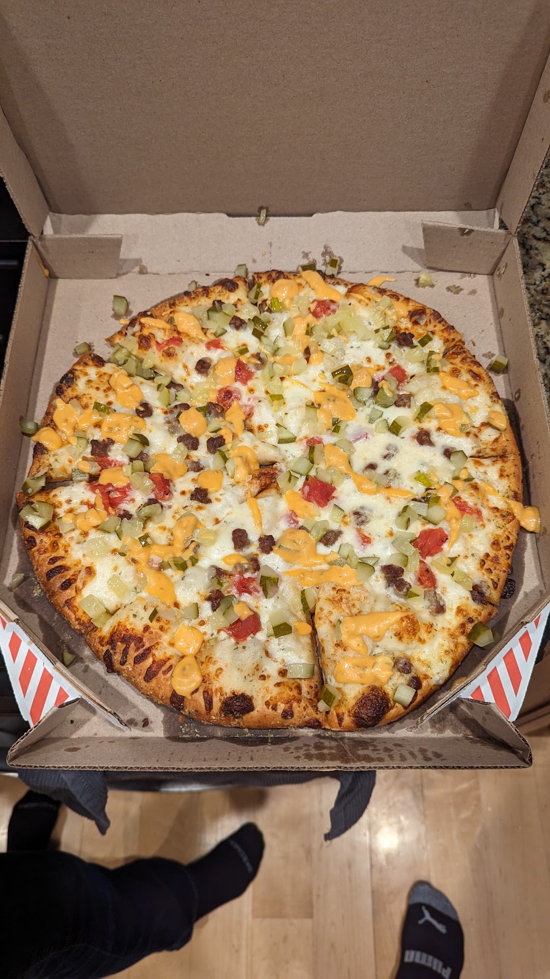 Read moreThe majority of my orders placed with Domino's Pizza are for no contact delivery. When I open the door and see a delivery person, I am always greeted by wonderful and courteous people with a smile on their face. All are always careful to place my order per my written instructions. On two occasions, my order was placed on the top railing of my porch to ensure the protection of my food. I was extremely pleased to see the initiative 👏 of the delivery person. In September 2022, I became a vegetarian and ordered cheese pizzas with veggie toppings. I love the Wisconsin 6 cheese pizza. It is so fresh and delicious 😋. That pizza really does not need any additional toppings, so most of the times I forego the veggie toppings. I hope the Wisconsin 6 cheese pizza is always...
