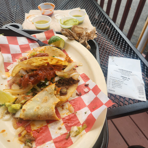 -Great staff! -Right off the road and cute patio. -Affordable and filling. â-------------- Ratings below are on a 10pt scale â----------- Day 1 Street tacos: Tinga chicken tacos (9/10 ) Flavorful chicken Steak tacos (6.7/10) Not as flavorful as I had expected and wanted. But easy to chew and with the different sauces you can get at the serve yourself station, the sauces made the steak tacos better.