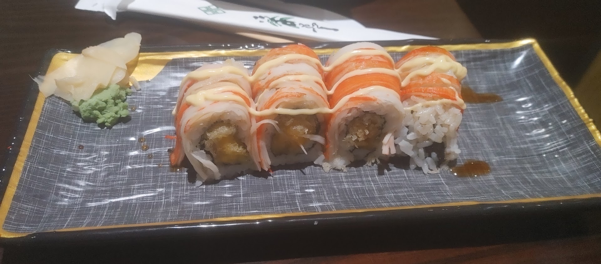 Read moreThis was an awful experience, I wish I could give zero stars. We have been here previously, and while it was never amazing sushi, it was an acceptable trade-off for quality vs price, and was always a decent experience. This is our first time back since Covid, and the quality was much much lower, but the price had gone up a bit. It definitely tipped the scales to make it not worth the price, but that alone wouldn’t have prompted this review. My first roll, a spice salmon, came out with almost no fish at all. Without any exaggeration, the roll had approx the size of my middle finger nail of salmon, and the rest tempura. I’m a small woman, my nail isn’t very big. I brought it to my servers attention, and he asked if I wanted a new roll without tempura. Perfect response, all is good. The second roll came, and it was slightly better. Now the roll was almost the size of my thumbnail, with the rice wrapped around several layers thick because they had to take up all the extra space somehow. It’s still ok, you get what you pay for, at this point I’ll think twice before coming back, but my meal isn’t ruined. But then...there is a long hair laying across my plate. I pick it off, but it is embedded into the wasabi. The server was still standing right there, and watched this happen. Since he saw it, I went ahead and complained, asked that my meal just not be charged since I hadn’t eaten anything, and dropped the hair. Much commotion and talk later, someone else is at my table trying to ask what happened, and clearly doubting my tale because “he (the server) didn’t understand what was happening”. Not my problem.