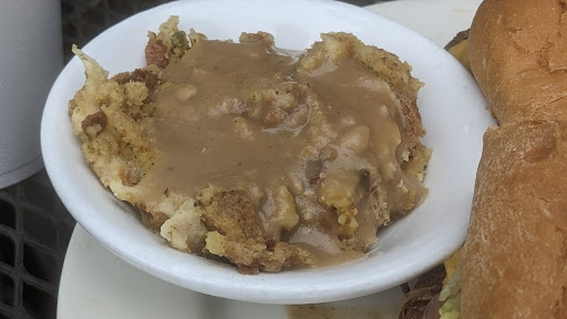 From the moment I stepped in, the counter staff impressed me with their sublime serviceākind, quick-witted, and genuinely grateful. We ordered two classics: the BBQ sandwich and the Philly steak with cheese, accompanied by sides of mac and cheese and stuffing with gravy. These dishes were pure comfort on plates, enjoyed in the charming outdoor setting on West Main.