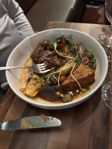 Cons: Our server made us incredibly uncomfortable from the get go. He greeted us in a monotonous, almost condescending tone, and then proceeded to do the same for the rest of the evening. We felt so unwelcomed. His entire demeanor almost ruined the night for us, but at least the food was good. We were asked how we were doing maybe once by the host and never again. Their clientele were older white folks, and both me and my friend are POC, which both crossed our minds as to how unwelcoming the place was for us. It was my birthday and he checked my ID for when I ordered a drink, but didn’t say anything about it nor offered to put a candle on our dessert. Their reservation system asked if we were visiting for any reason and my friend said for a birthday, but despite them prompting us for that info via email they still didn’t do anything during the meal. NO BREAD. The waiter brought us some dry olives which we didn’t even touch. How bizarre. It was hard finding the entrance to the place, we ended up coming in through the back from inside the strip mall since that’s what our GPS pointed us to.