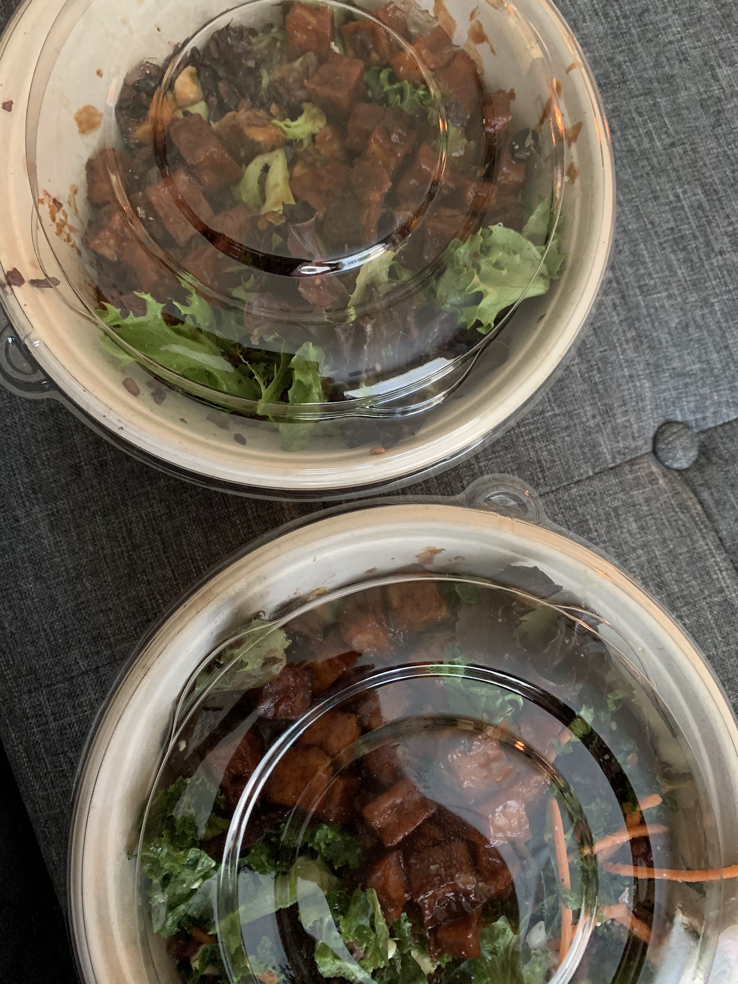 Below is my girlfriend and my order. I was supposed to receive chicken and she was to receive BBQ tofu. Both orders are BBQ tofu.