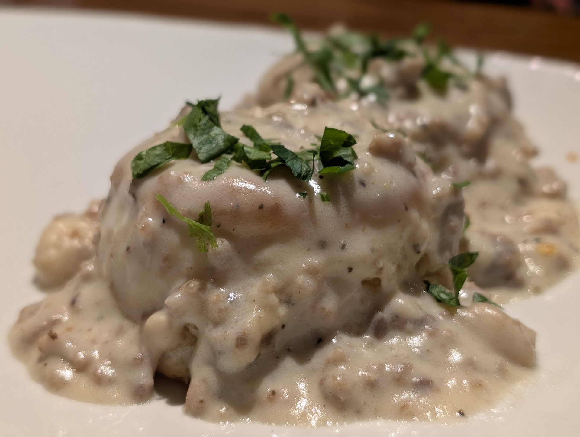 The creamy garlic mashed potatoes were indeed creamy they had just the correct amount of garlic that allowed you to taste it but was no where even close to be overpowering. That along with the spinach had you walking away from the meal thinking and saying "Wow, that was good I mean really really good".