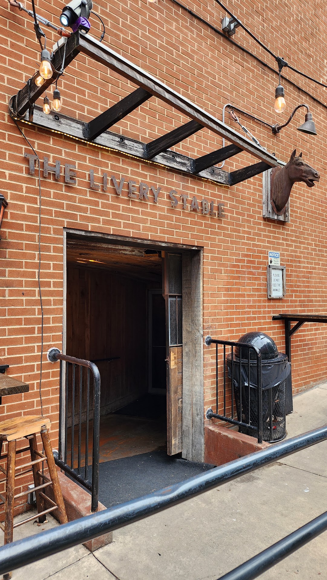 The Livery Stable is all the way at the end of Main Street in Charlottesville. Except for the beautiful horsehead hanging outside, you might miss it. But the scnene inside is always a blast, and I walked past longingly a few times before I went in. Something about it, the thin windows, the atmosphere, or the allure, kept me from going in for 2 months. Recently, I went in. It's a party, no doubt. On a Monday night, it was packed. Great music, the bartenders are friendly, bold, and handsome. After a while, I started some conversations, and met some regulars. It does not seem that they even think about going anywhere else. Visitors to Cville came in. Students were there. Lots of laughs, great beer, and I bet they serve food, but I was so taken with the rest, I never found out. This is a community bar. I thanked the owner, Ian, for a great time, and asked him how he did it. He just smiled and said, essentially, Make a space that's safe for people to have a good time, and they keep coming. I love this place. I should have followed my gut right in. Also notable: I had an impromptu arm wrestling session with a beautiful girl who had won many. I was pantsed by a cute college girl. I found out that one of the bartenders was less concerned about scuffles in the bar because he had survived IEDs in action. The place is legit, and...