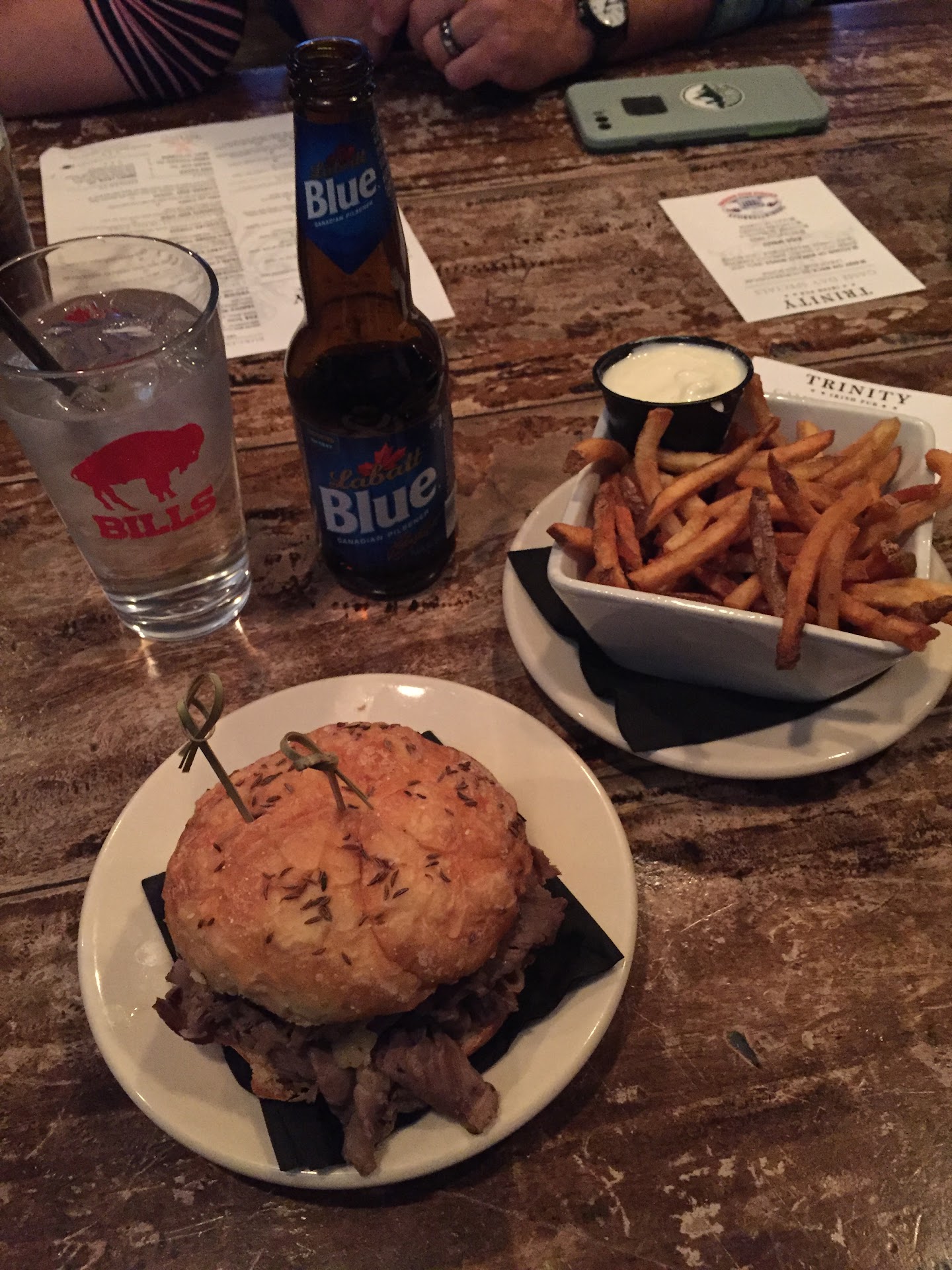 Read moreParent for summer orientation. Bored, went here for the billboard special "Chicken Caesar Wrap". Ordered the Blue Moon Belgium, got the stein for the cost of the mug. Big stein. With an orange slice.