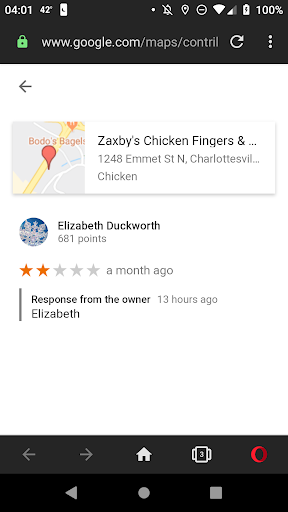 I stand by the ideal that the apparent owner of a venue does not make a customer who left a negative rating uncomfortable, even if it was a mistake. As of writing this, the reply was made 13 hours ago. I'm guessing it was a mistake or done by a bot, but I would hope that responses would be more personal than that.